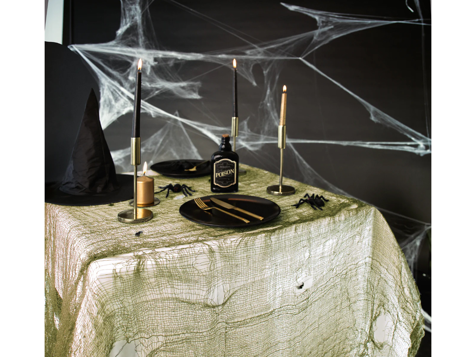 Fokozza a titokzatos hangulatot Halloween idején a zöld dekoratív hálónkkal! Univerzális méret 76 x 300 cm széles körű felhasználást tesz lehetővé: az ablakok és ajtók függönyeitől az eredeti asztalterítőkig. A rács tökéletes fali dekorációként, egyedi hangulatot kölcsönözve otthonának.