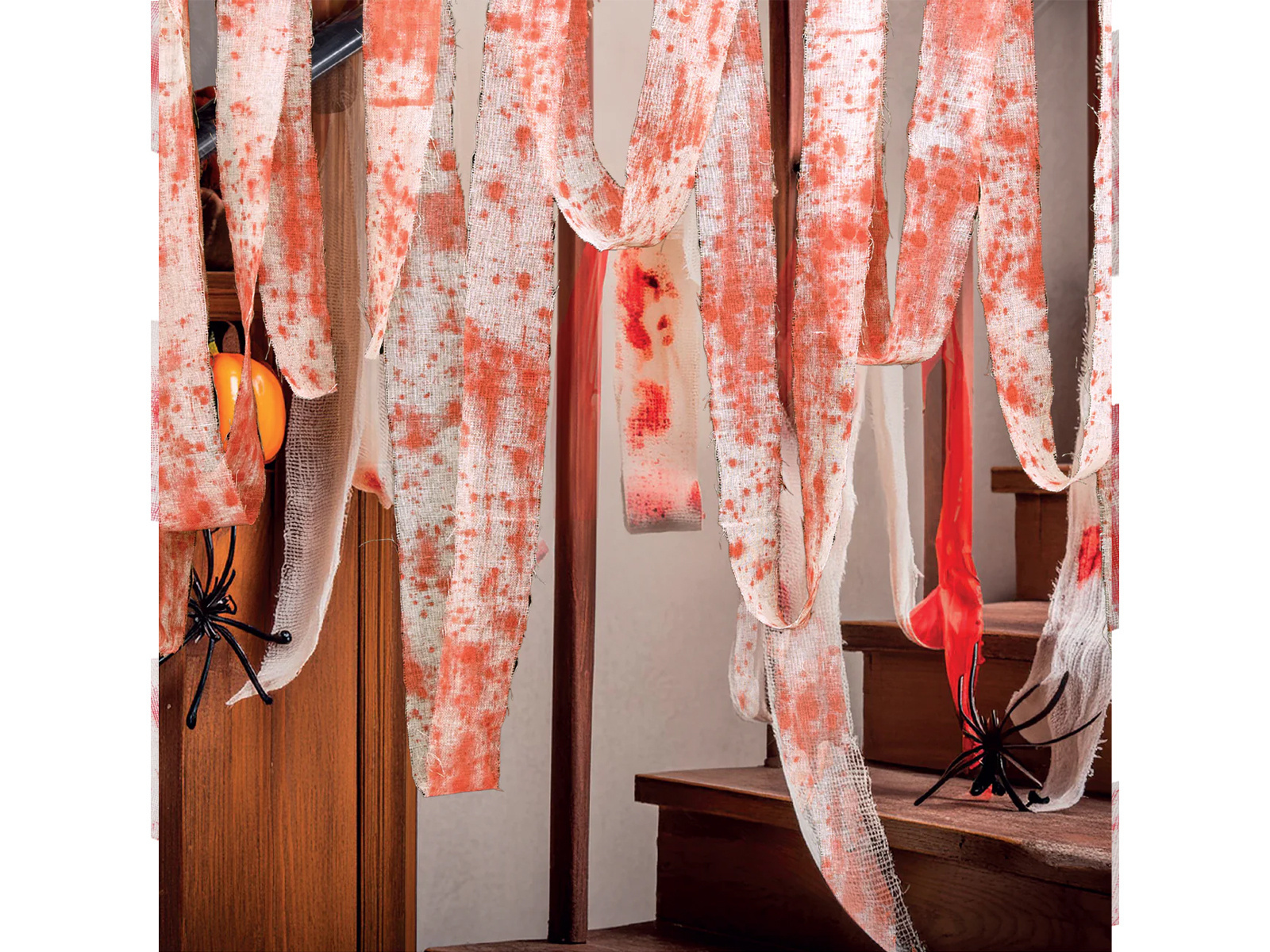 Alakítsa át tereit a horror sötét jelenetévé a mi Vérfoltos kötés! Ez a hitelesnek tűnő véres kötés tökéletes kiegészítője minden halloweeni eseménynek, egyedi, hátborzongató hangulatot kölcsönöz a belső tereknek. Könnyedén díszítheti vele az ajtókat, falakat és akár az ablakokat is, izgalmas hangulatot teremtve.