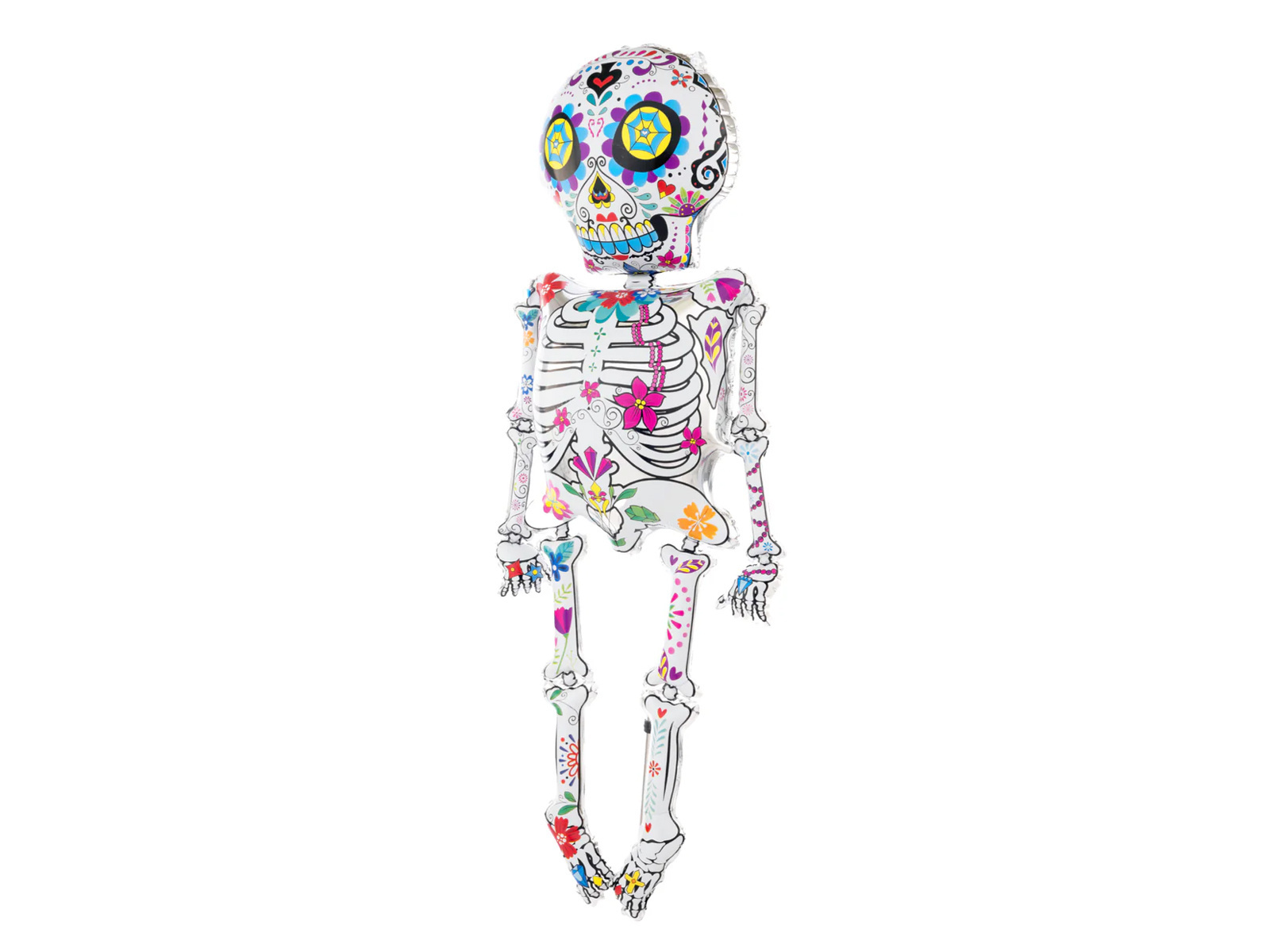 Merüljön el a Halloween a mexikói hagyományok hangulatában a mi Mexikói csontváz fólialufi. Tökéletes dekoráció bármilyen Halloween partira, ez az egyedi lufi egy mexikói koponya stílusú csontvázat ábrázol. Felfújva lenyűgöző méreteket ér el 46 cm x 27 cm x 136 cm, ami minden tér megkülönböztető elemévé teszi.