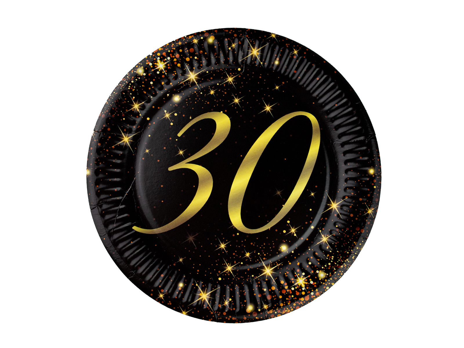 • Papír születésnapi tányérok a Sparkling készletből a 30. - 30. születésnapi partira.