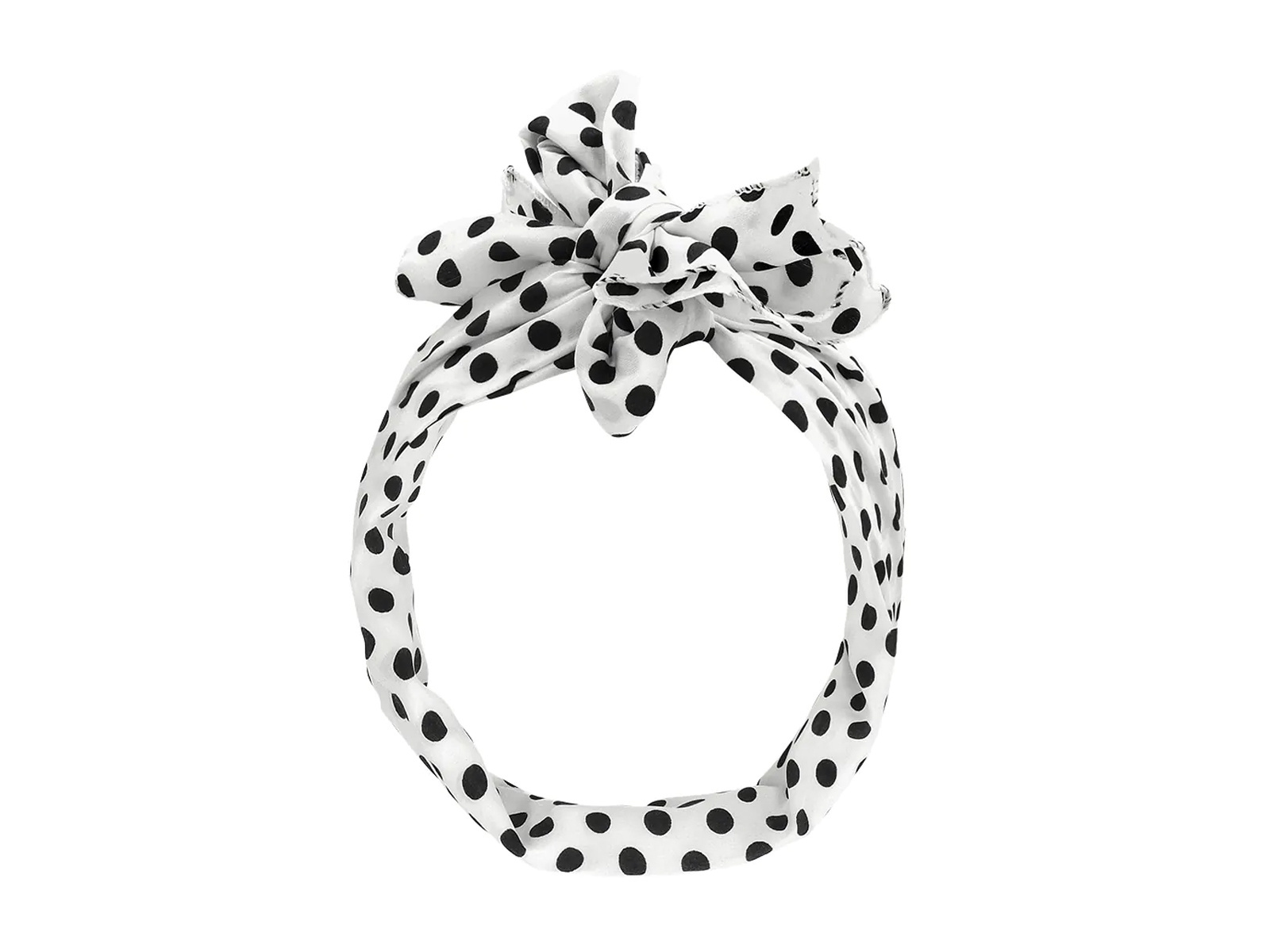 - Fehér hajpánt fekete pöttyökkel, stílusos hangsúlyt adva a frizurának.