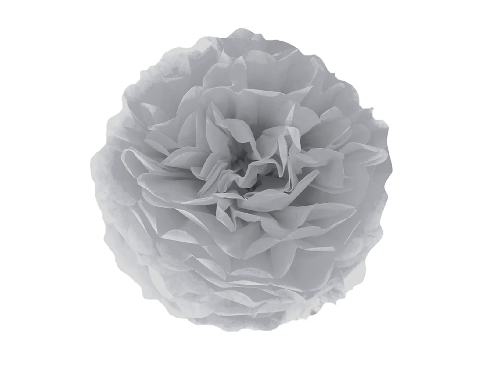 Függő pom pom virág dekoráció - szürke - 35 cm - 1 db.