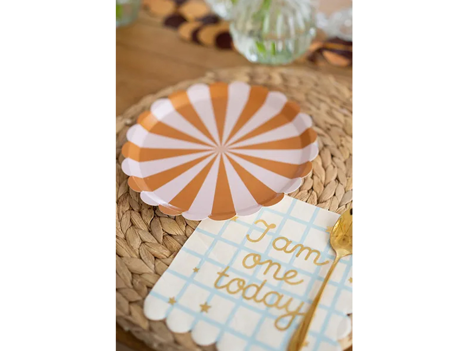 Barna és rózsaszín csíkos papírtányérok - 21 cm - 6 db.