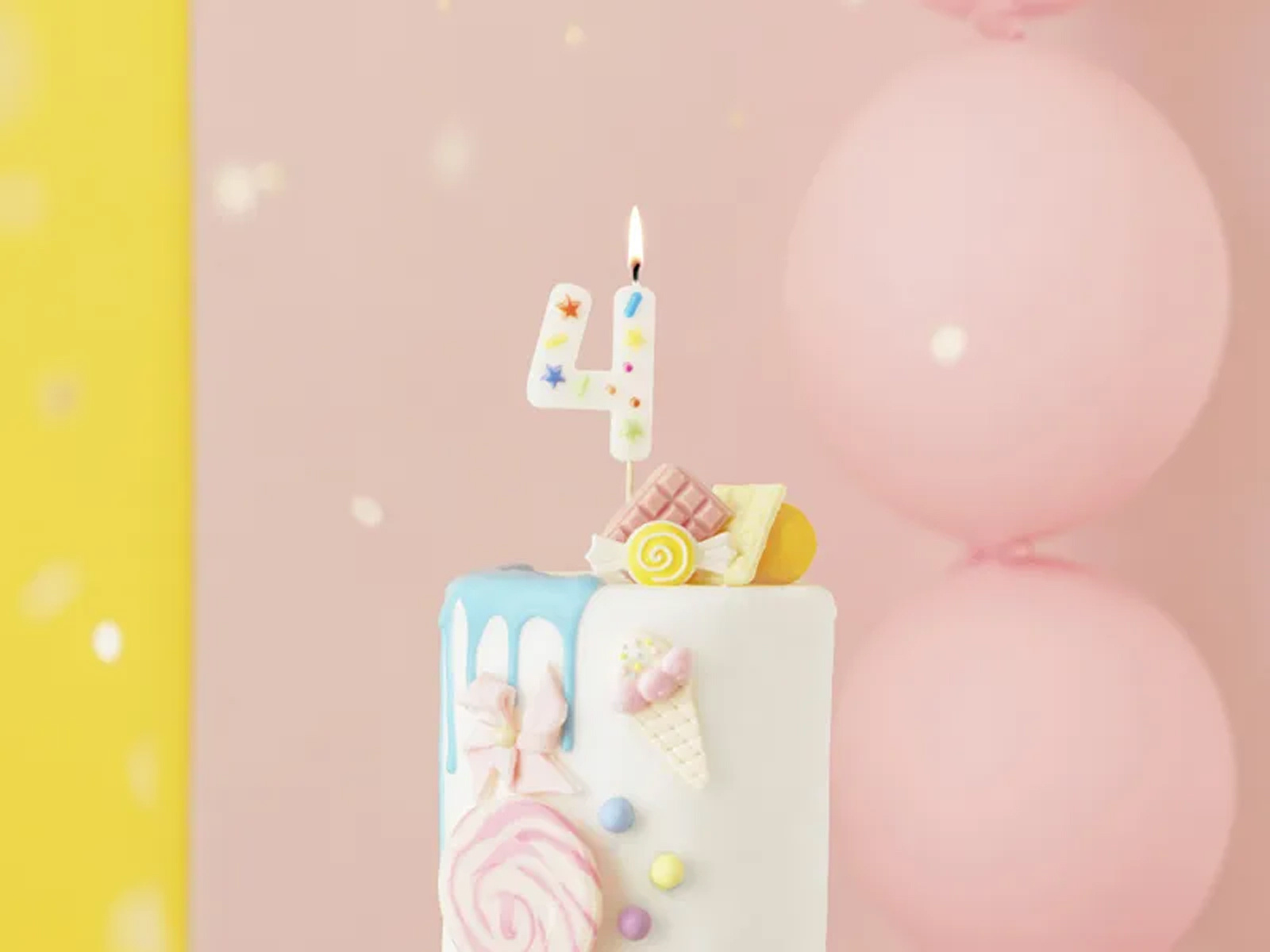 Négyes számú konfetti gyertya - 4 - 1 db.