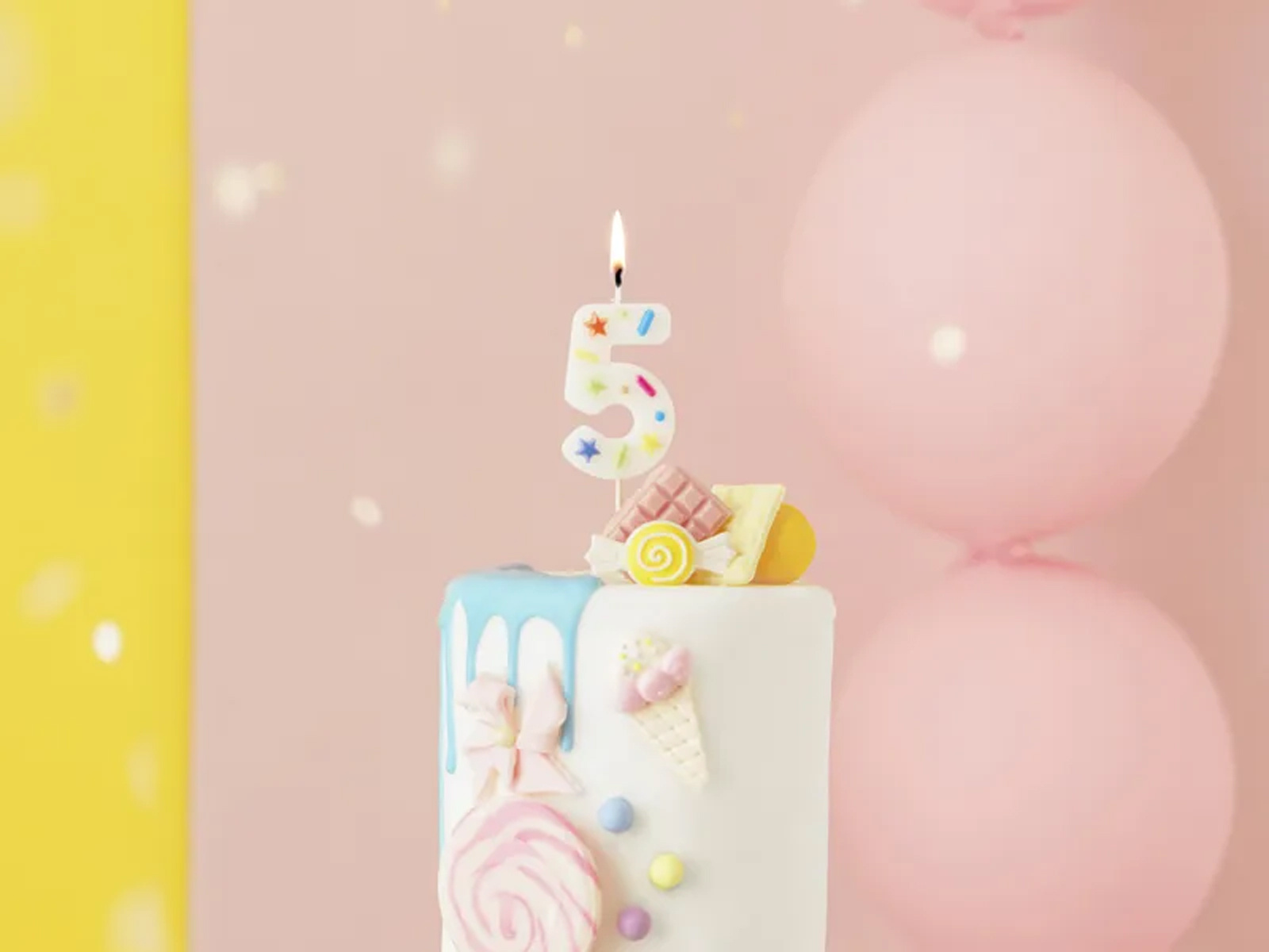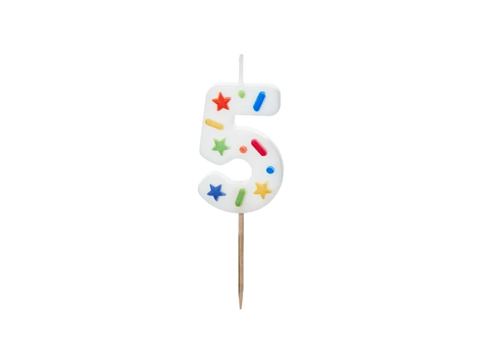 Ötös számú konfetti gyertya - 5 - 1 db.