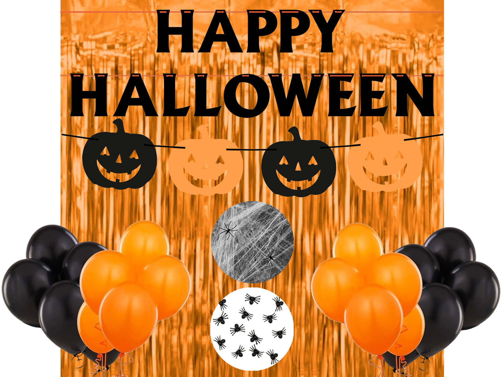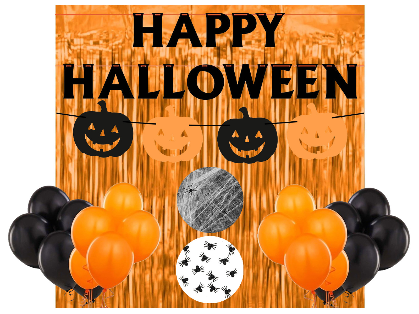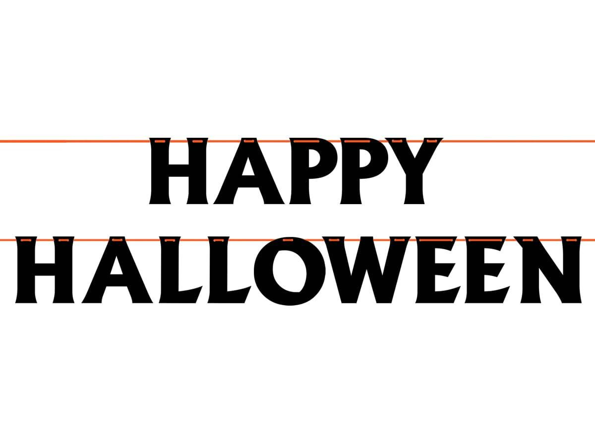 Boldog Halloween banner - 500 cm - 1 db. - Fekete banner szalaggal. A bannerhez bármilyen elem csatlakoztatható, a banner önösszeszerződik. Szalag hossza: 500 cm. Betűmagasság: 13,5 cm.
