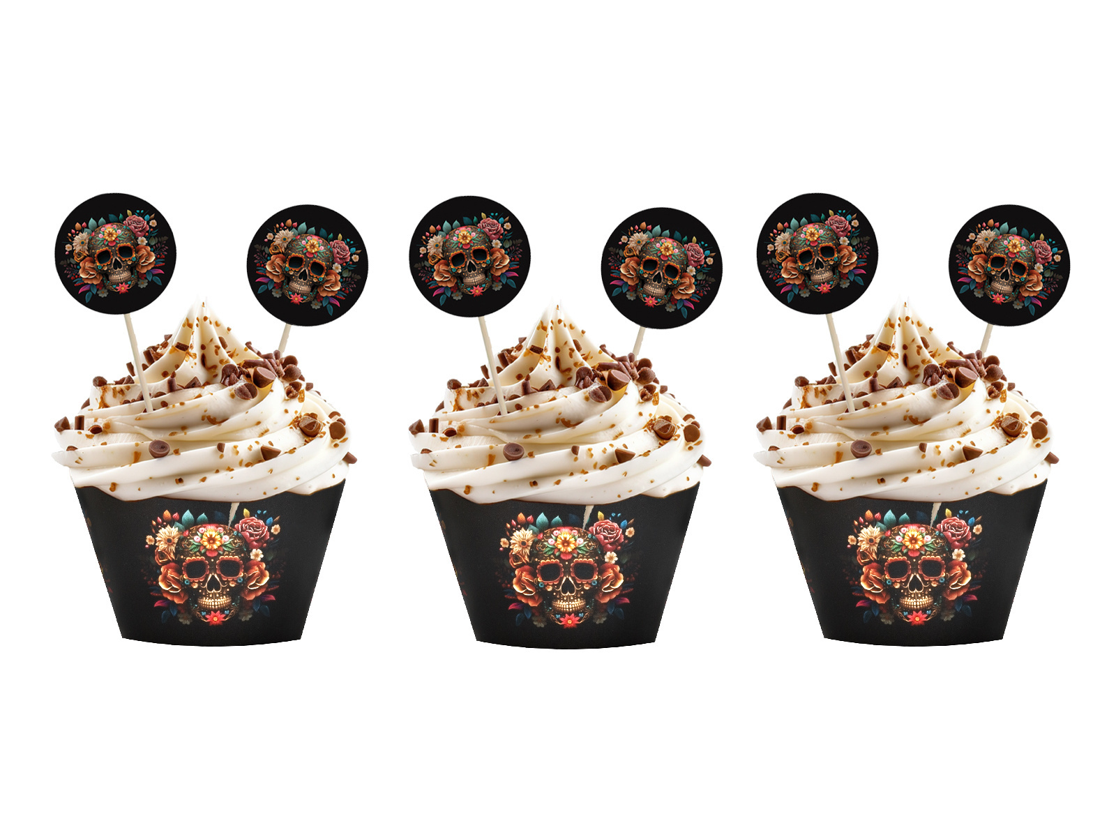 Dia de los muertos cupcake dekorációs készlet - 12 db.