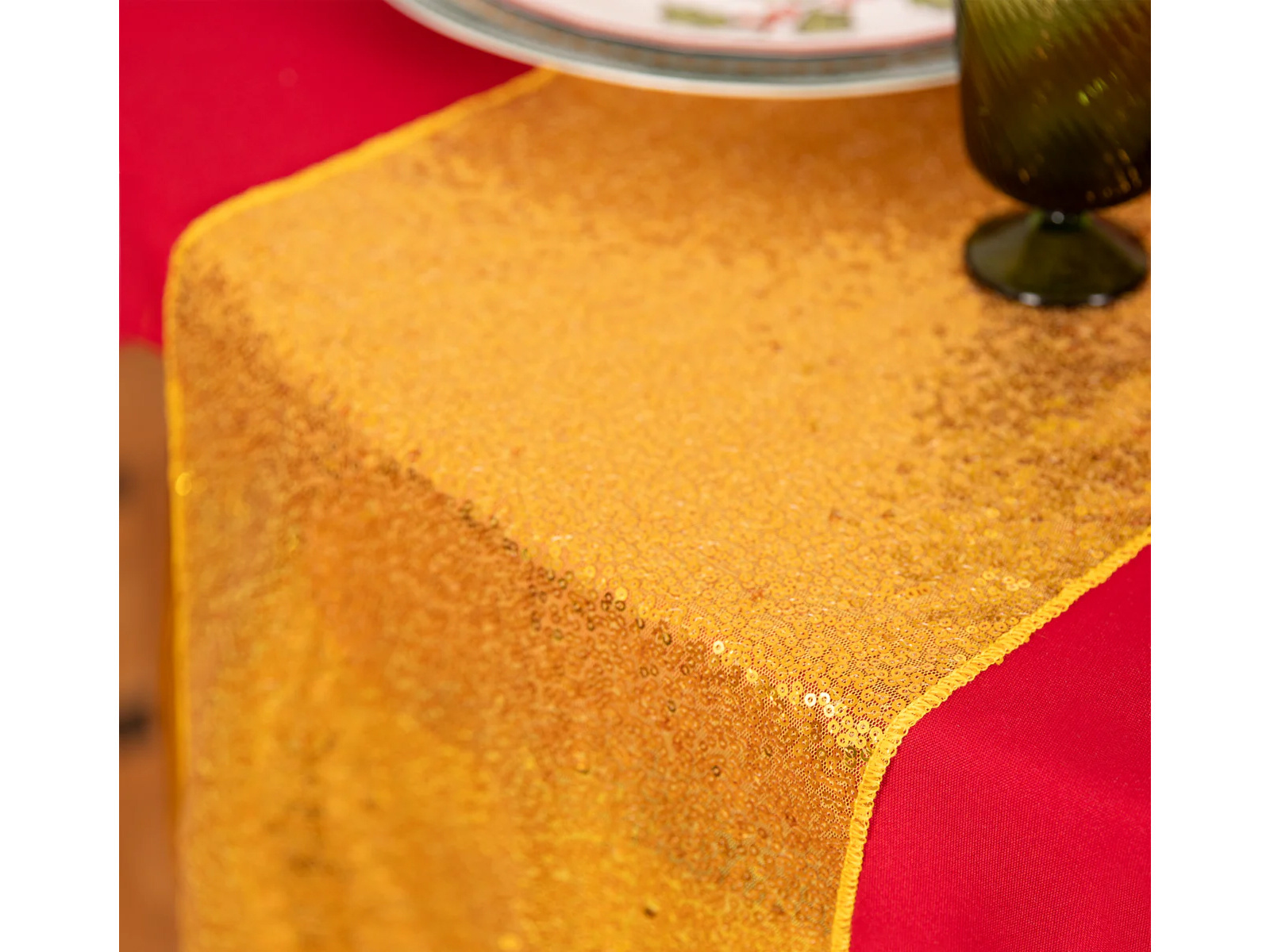 Tegye ünneplését csillogó eseménnyé a mi arany flitteres futóval. Tökéletes bármilyen alkalomra, karácsonytól szilveszterig, ez a futó csillogást kölcsönöz minden partinak. A 28 cm széles és 2 m hosszú futó tökéletesen illeszkedik a legtöbb asztalhoz.