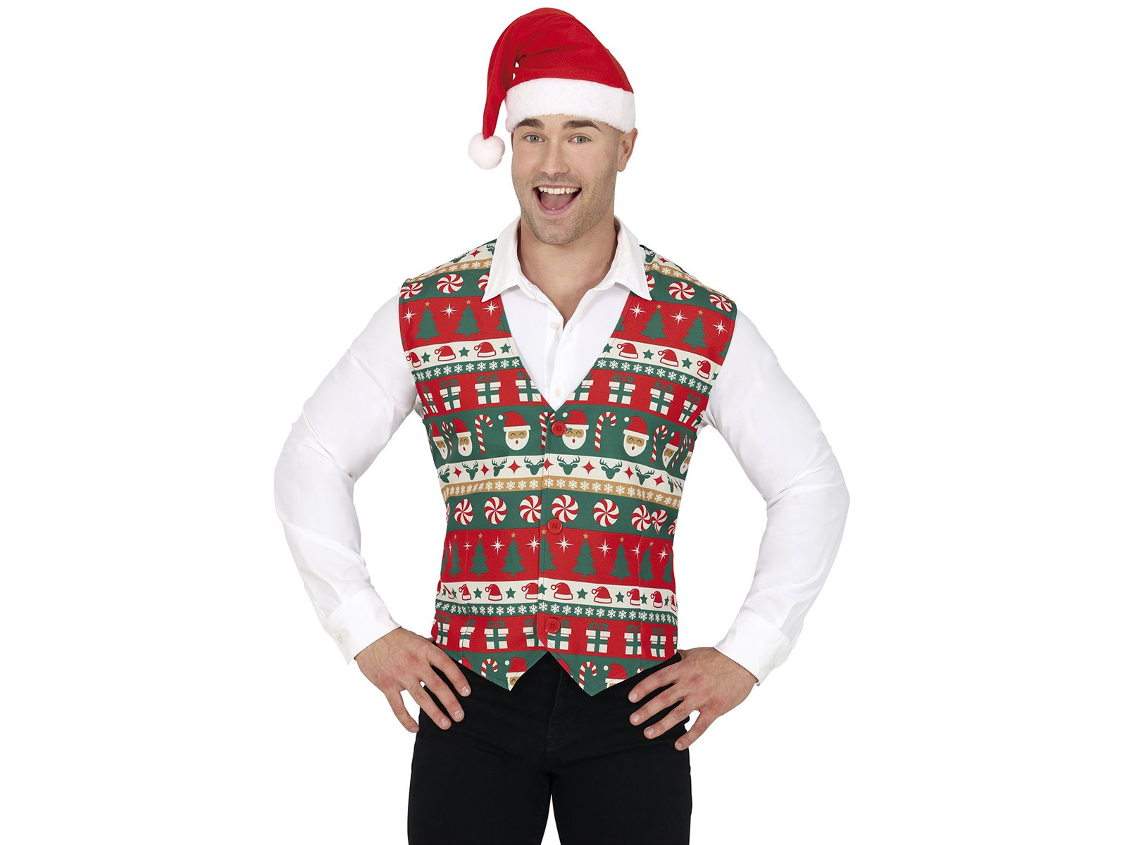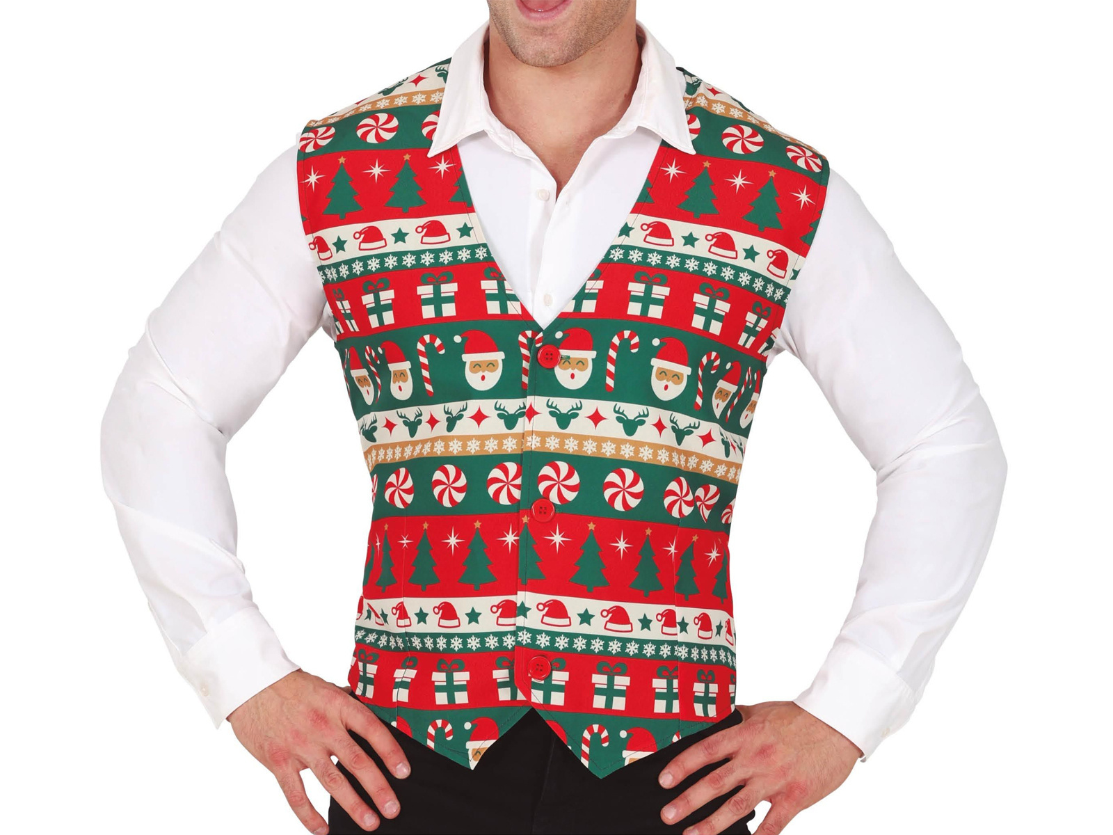 Álljon ki ezen a télen exkluzív ünnepi mintás mellény. Tökéletes minden olyan férfi számára, aki egy kis ünnepi humort szeretne adni az öltözékéhez. Mellényünket úgy terveztük, hogy felnőtt férfiaknak is megfeleljen, kényelmet és stílust biztosítva a karácsonyi partikhoz vagy a családi énekléshez.