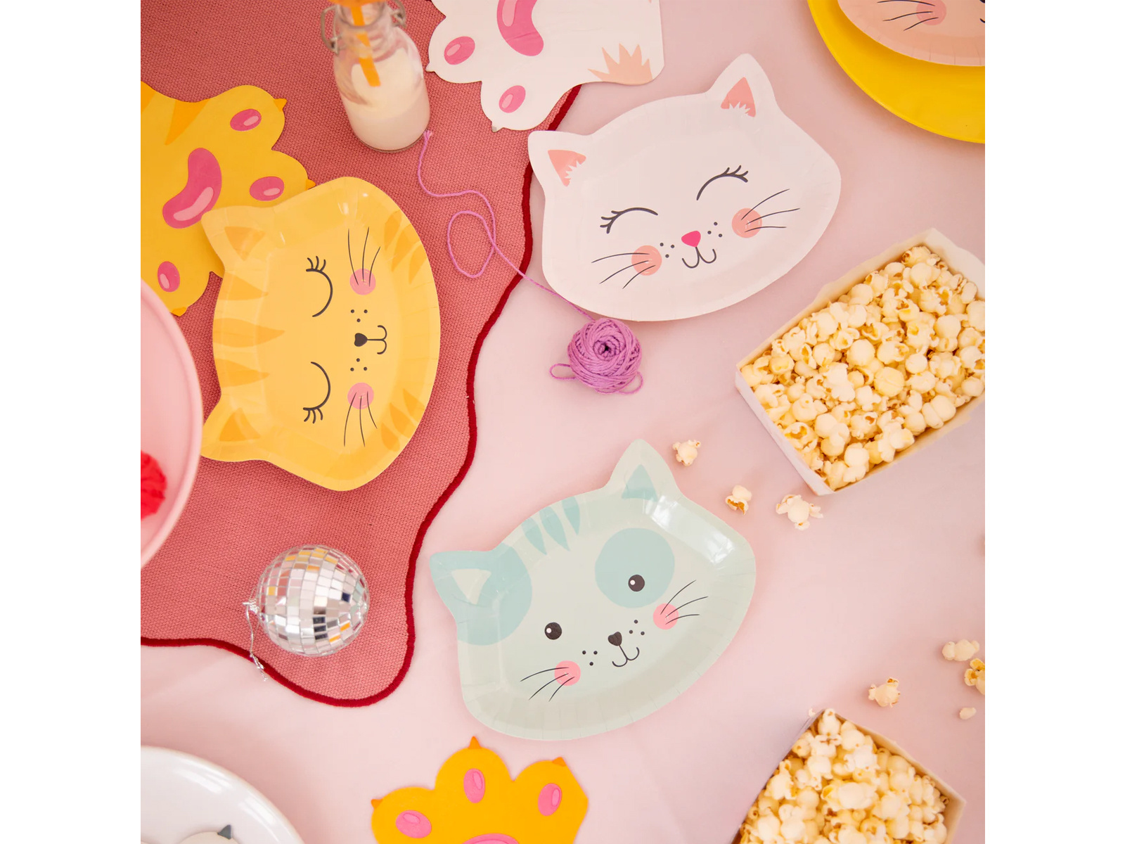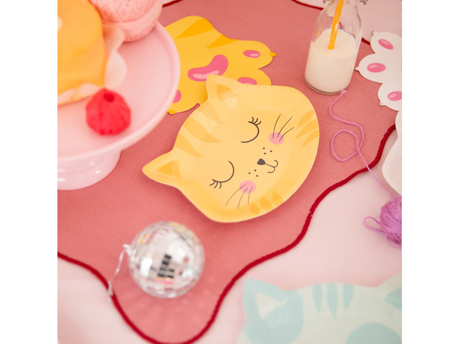 • Macska alakú papírtányérok, ideális születésnapokra.