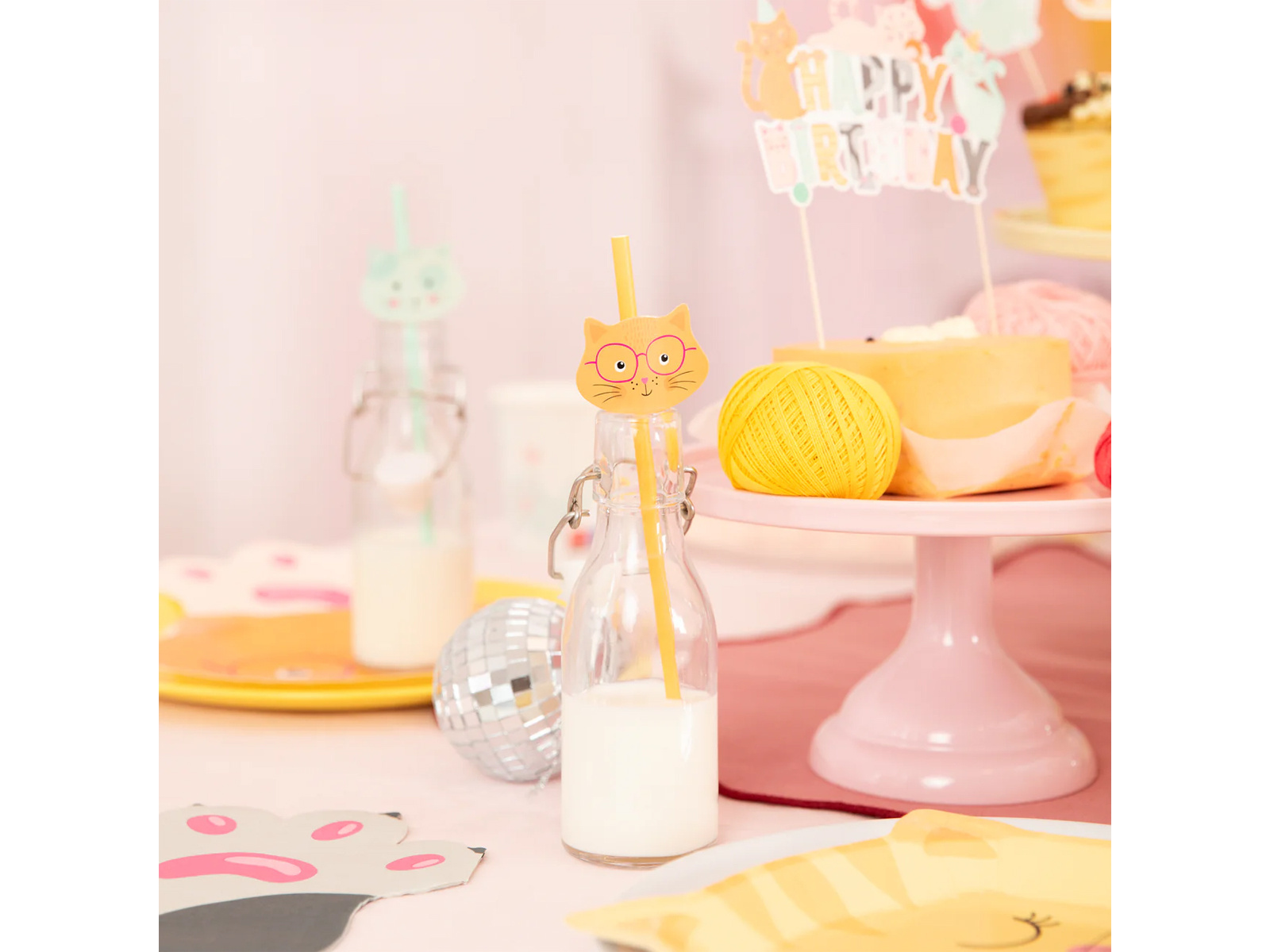 Macska születésnapi szívószál - 19,5 cm - 6 db.