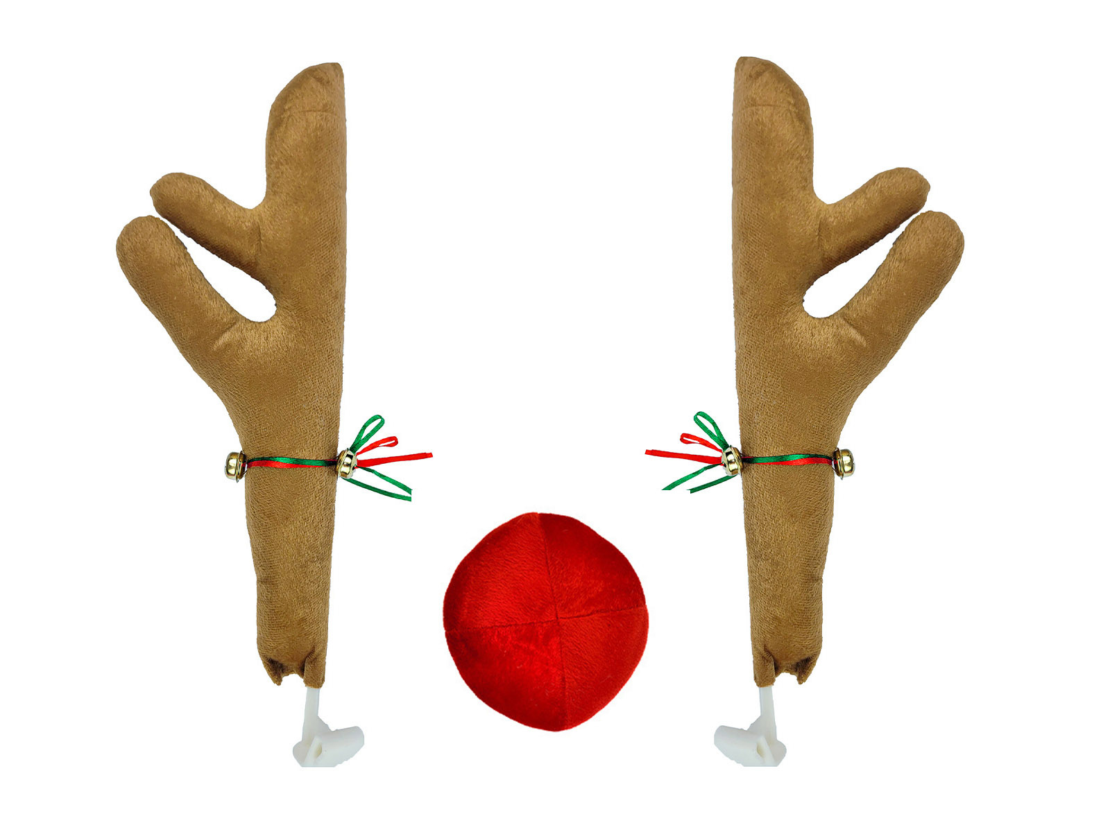 Autódísz Barna rénszarvas szarvak és orr - 1 szett.