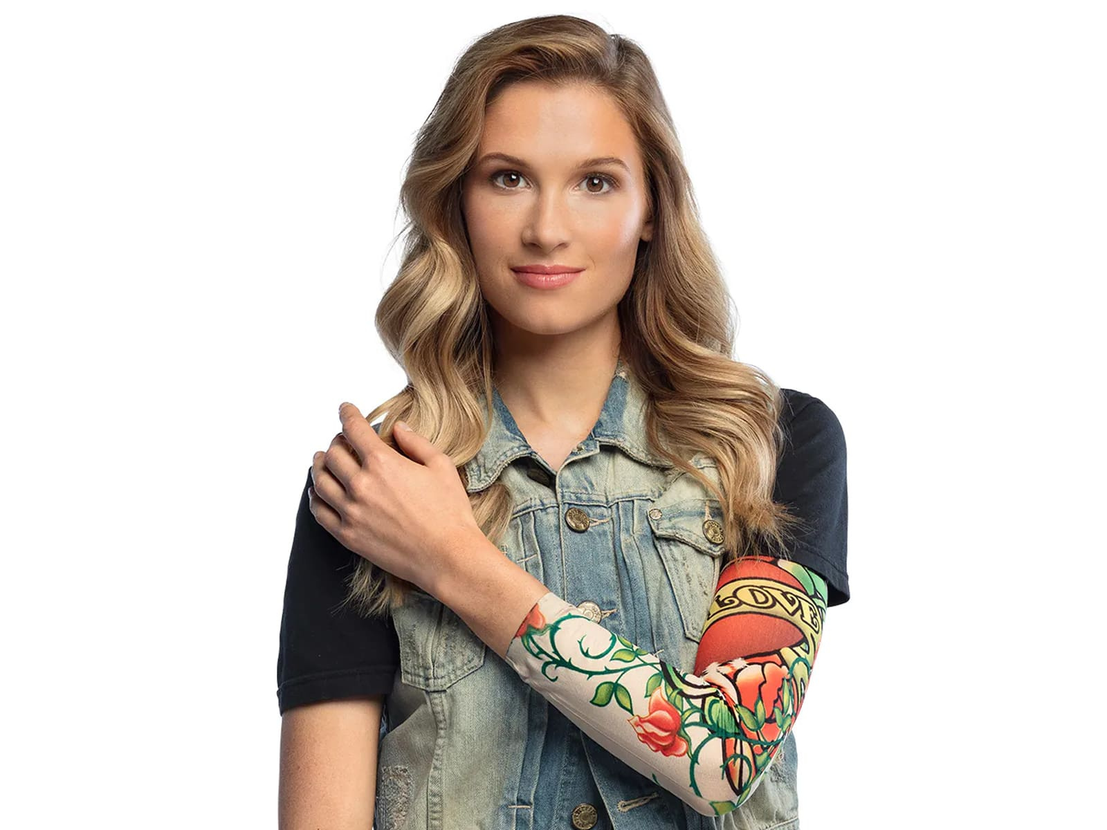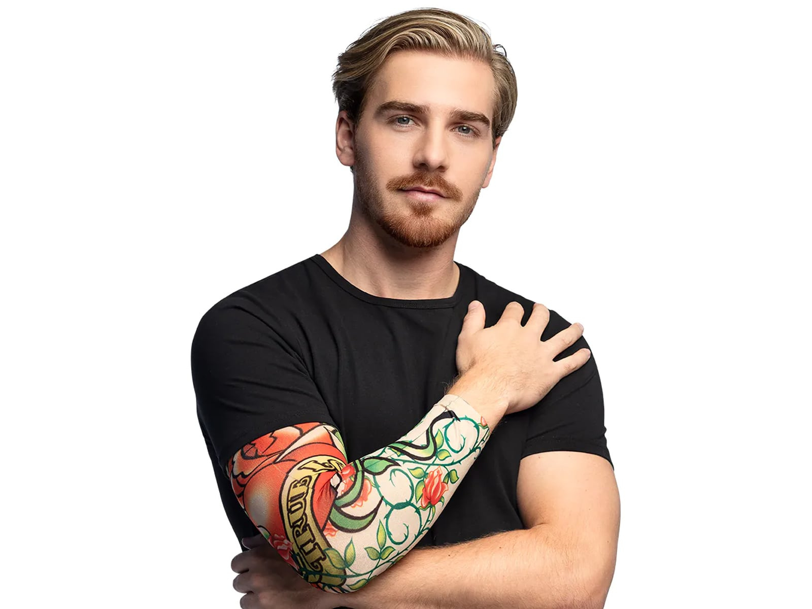 • Teljes kar tetoválás rózsákkal és az 'Igaz szerelem' szavakkal.