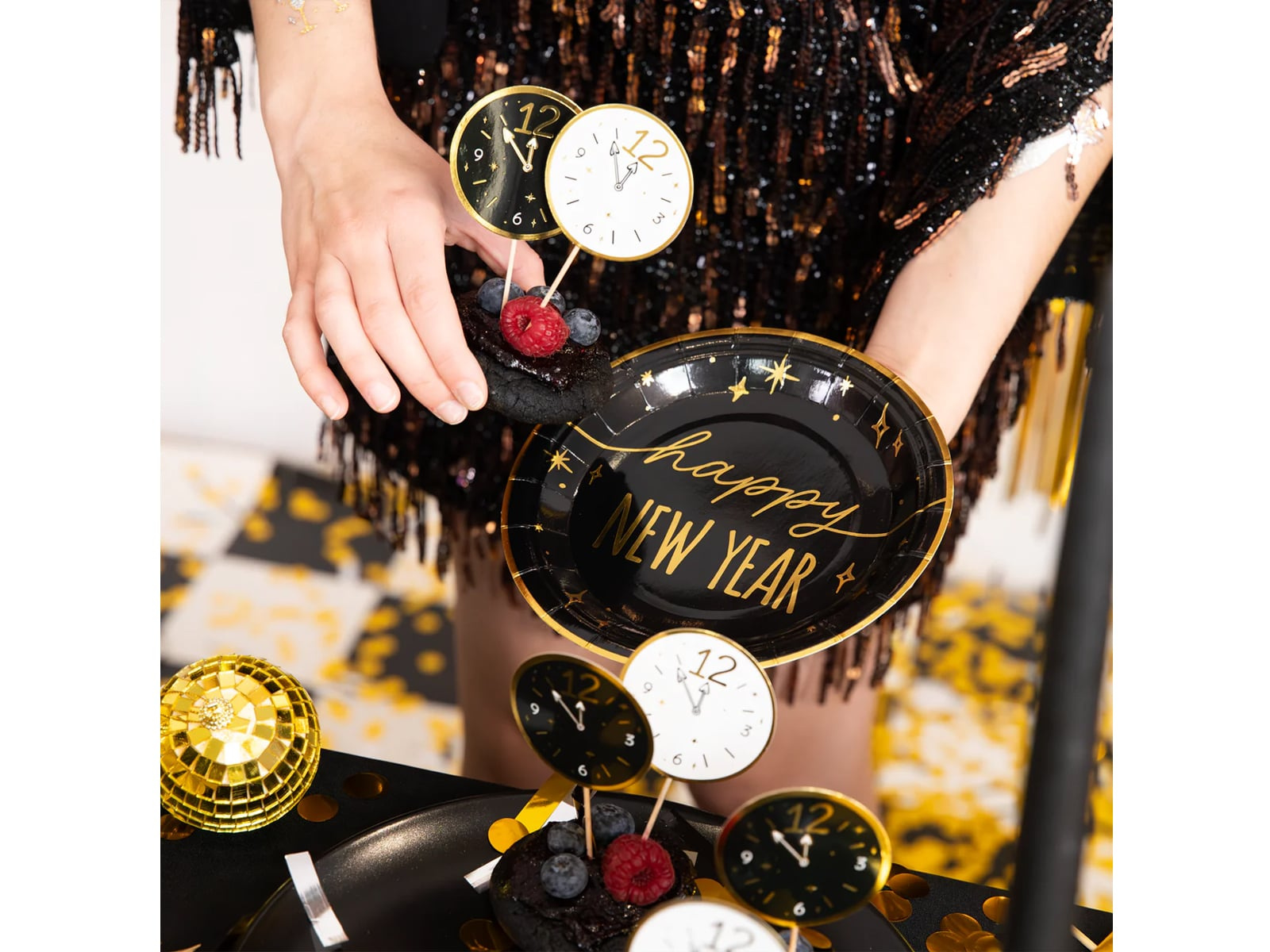 Papírtányérok szilveszterre Boldog új évet fekete - 18 cm - 6 db.