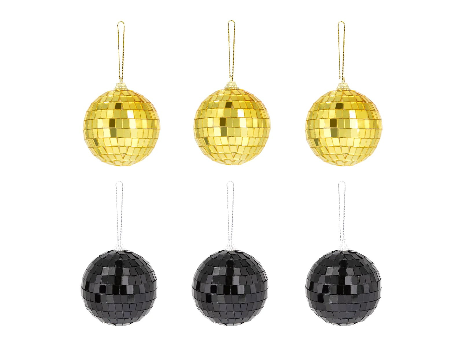 Arany és fekete tükör diszkógömbök - 7 cm - 6 db.