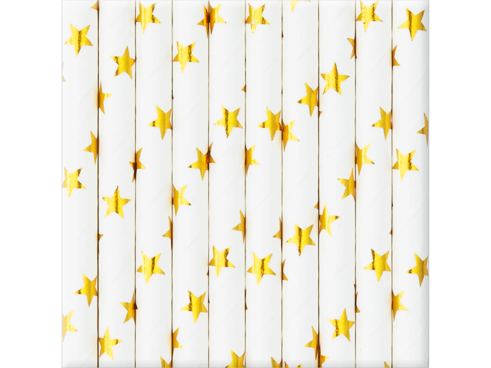 Csőszívószálak fehér arany csillagokkal - 10 db.