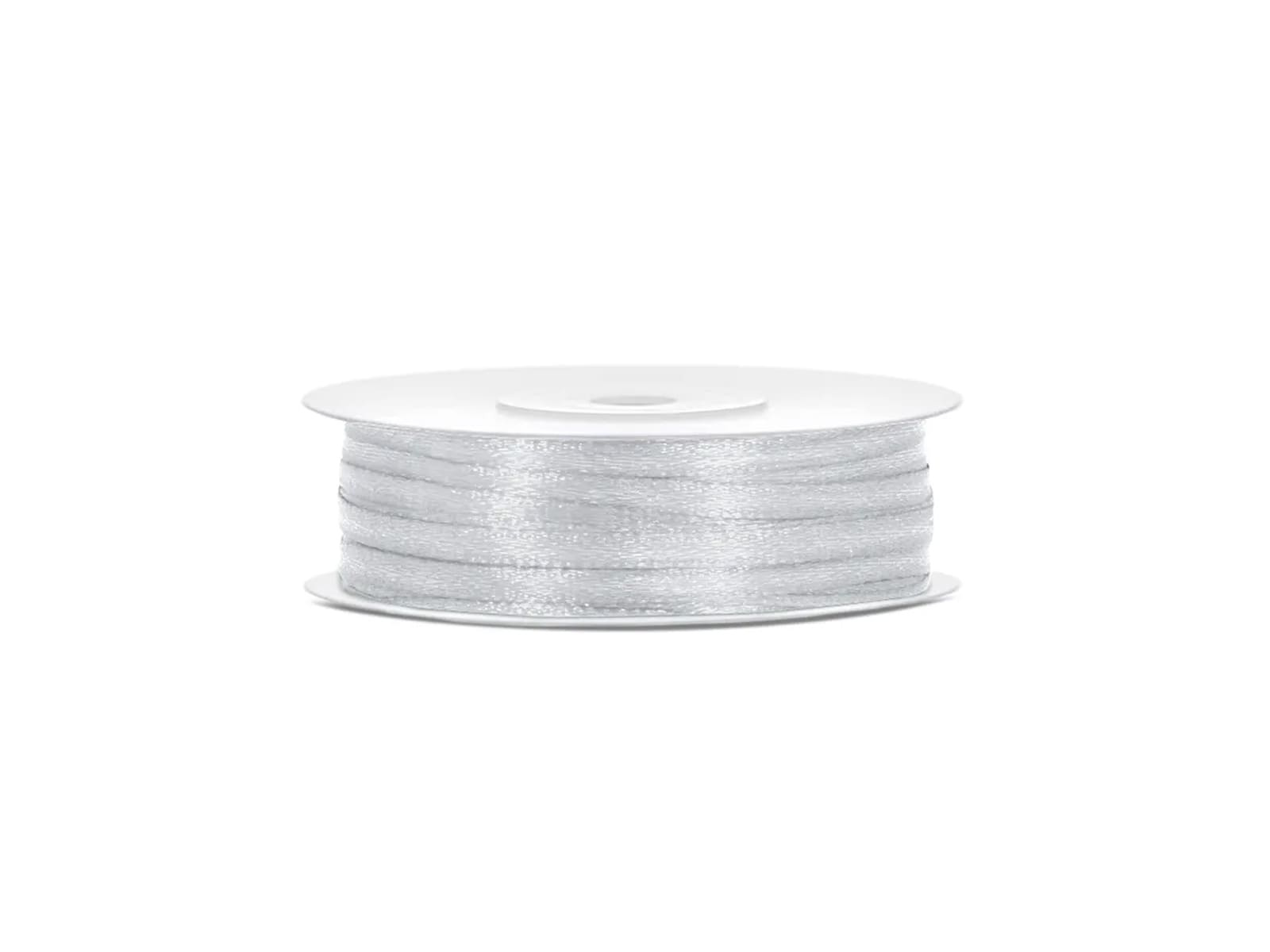 Szatén szalag, ezüst, 3 mm / 50 m, 1 db.