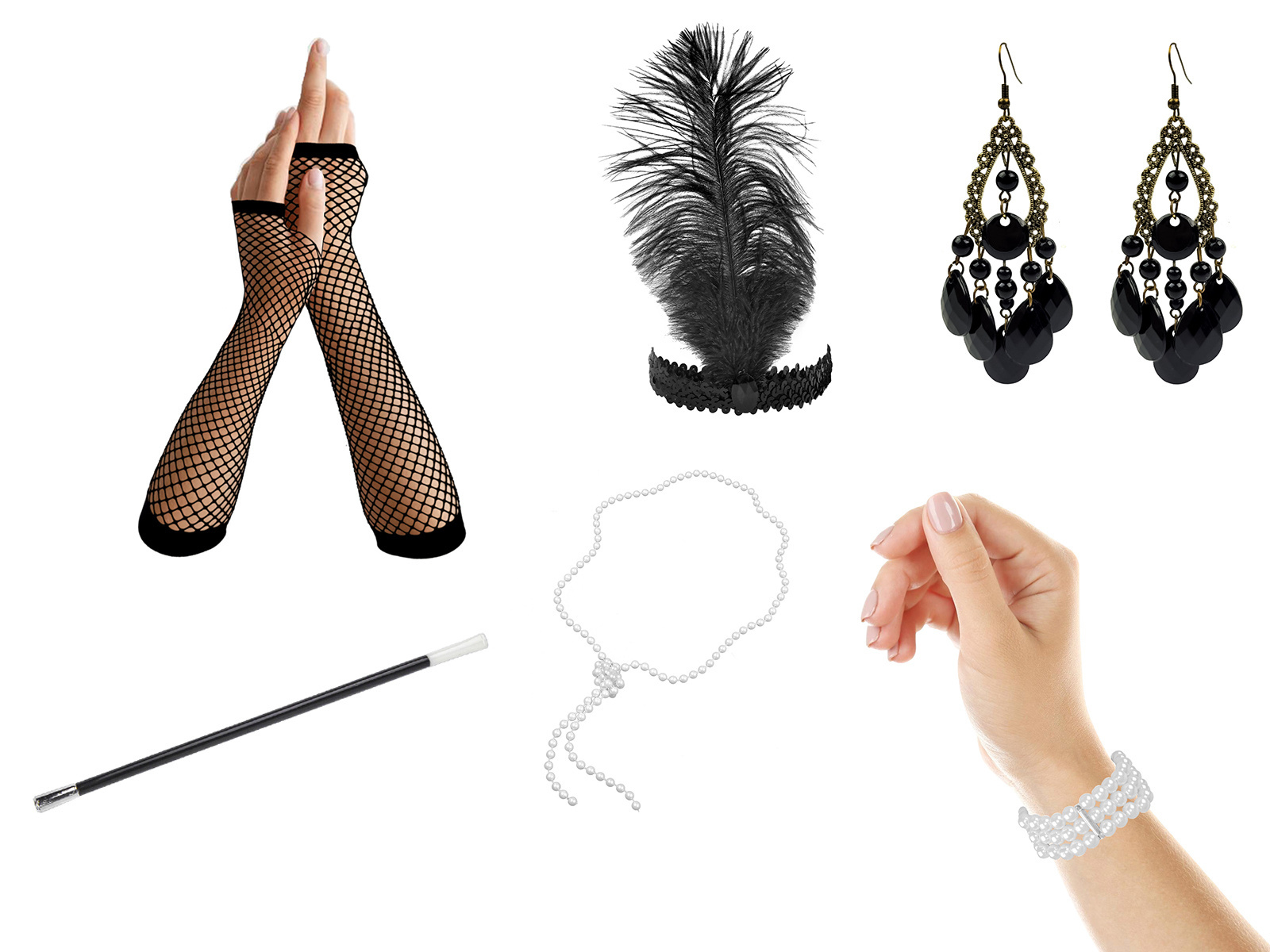 - fekete fejpánt tollakkal és kaviccsal,