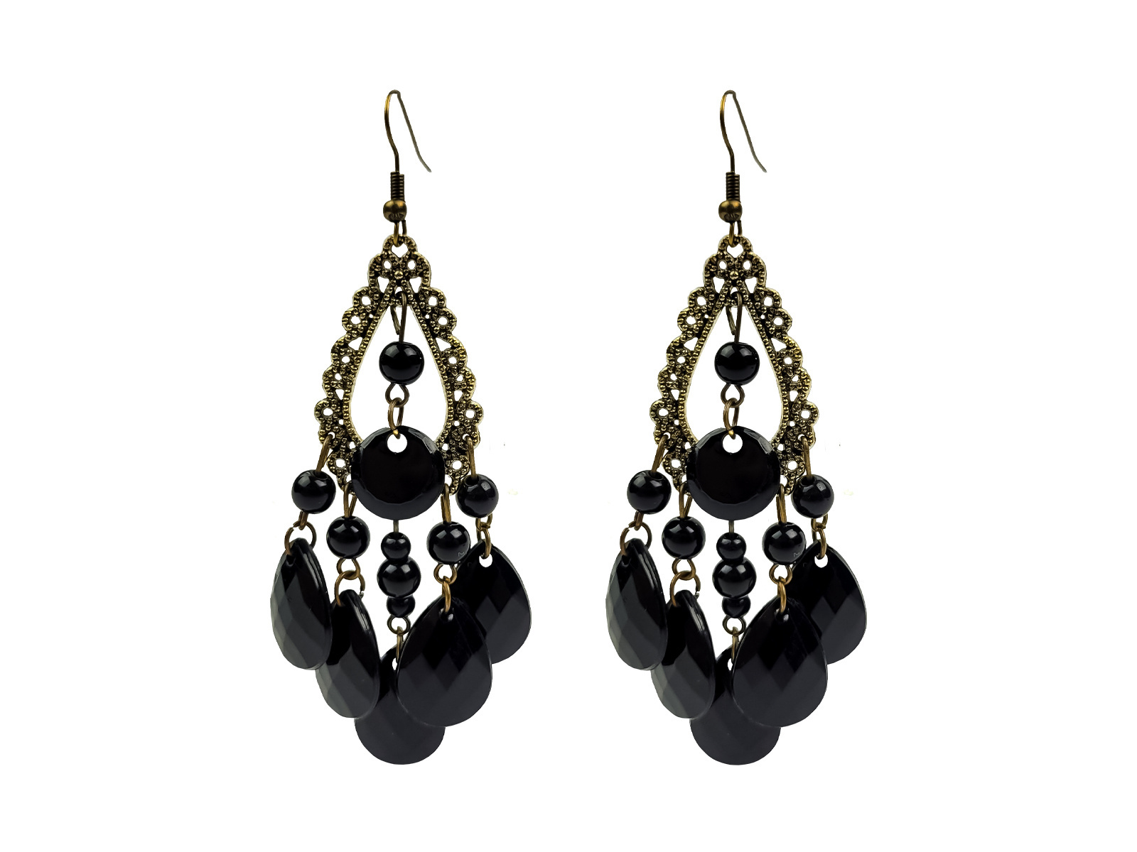 - fülbevaló fekete kövekkel,