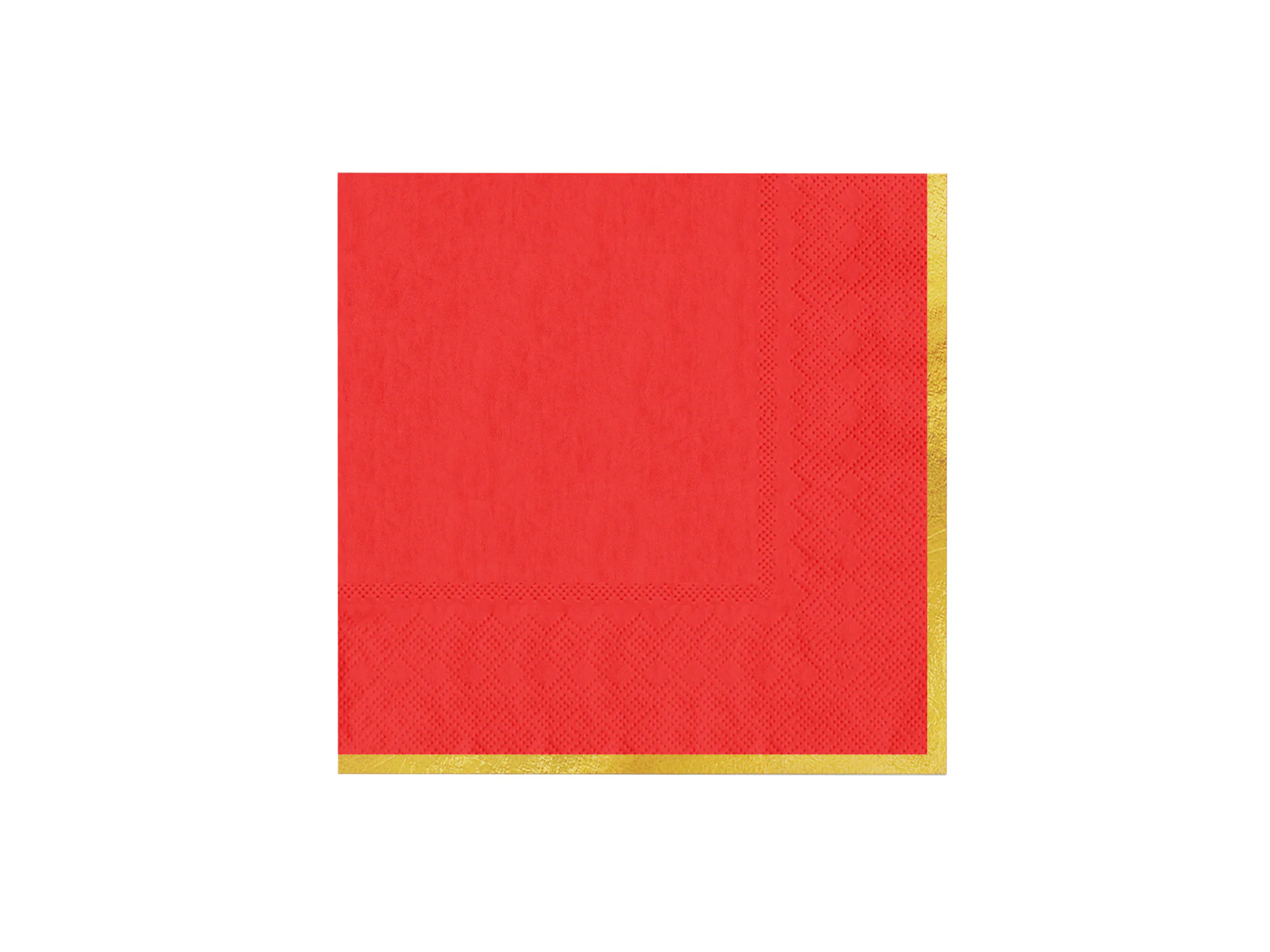 Piros papírszalvéta aranyszegéllyel - 33 cm - 10 db.