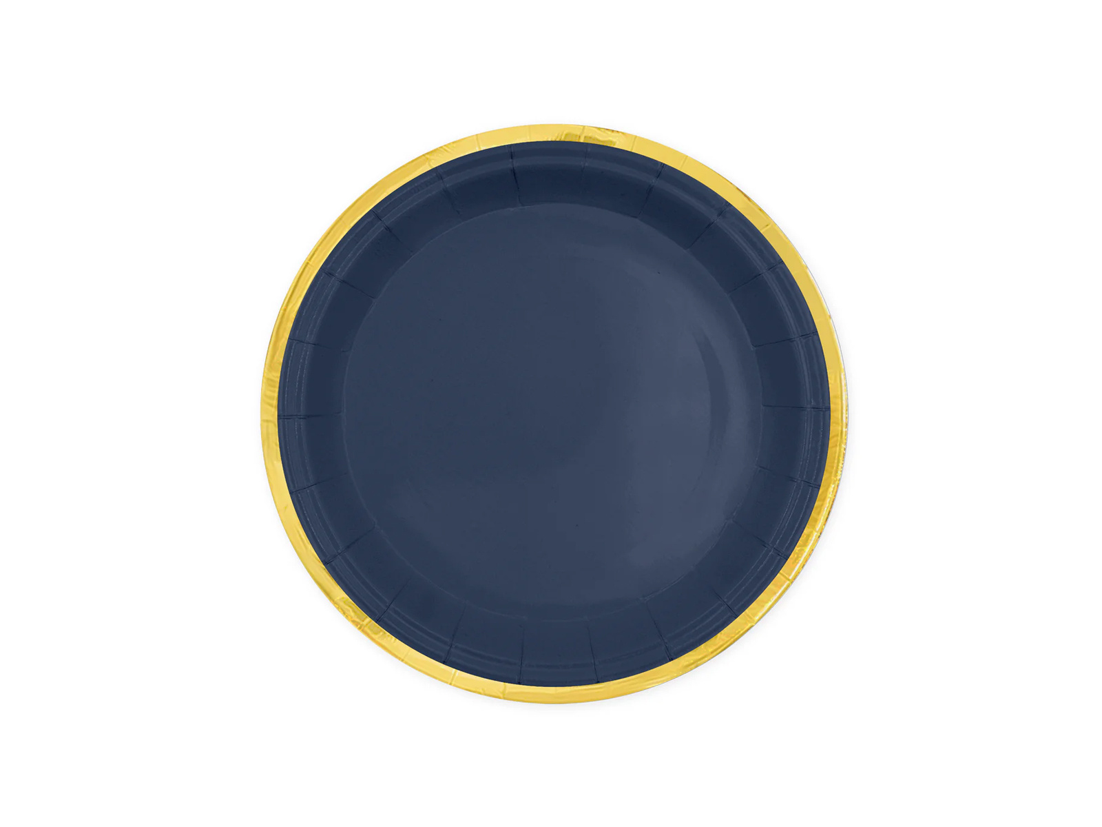 Tengerészkék papírtányérok arany peremmel - 18 cm - 6 db.