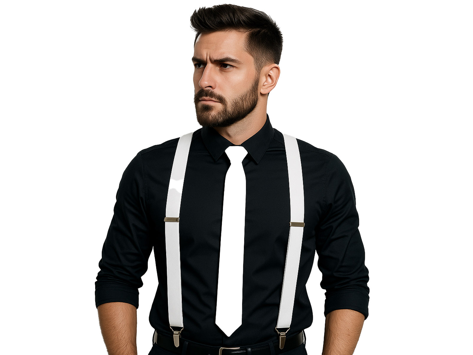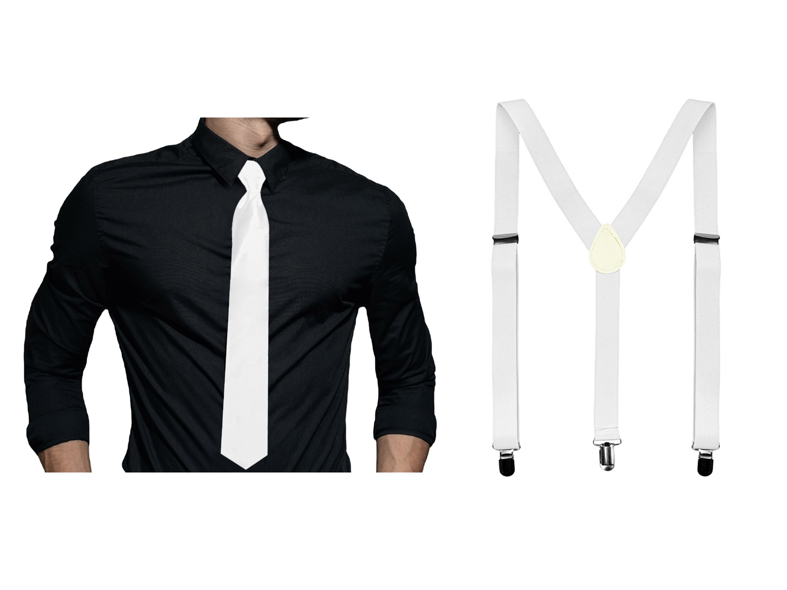 Fehér kiegészítő szett nadrágtartó hosszú nyakkendővel - 2 db.
