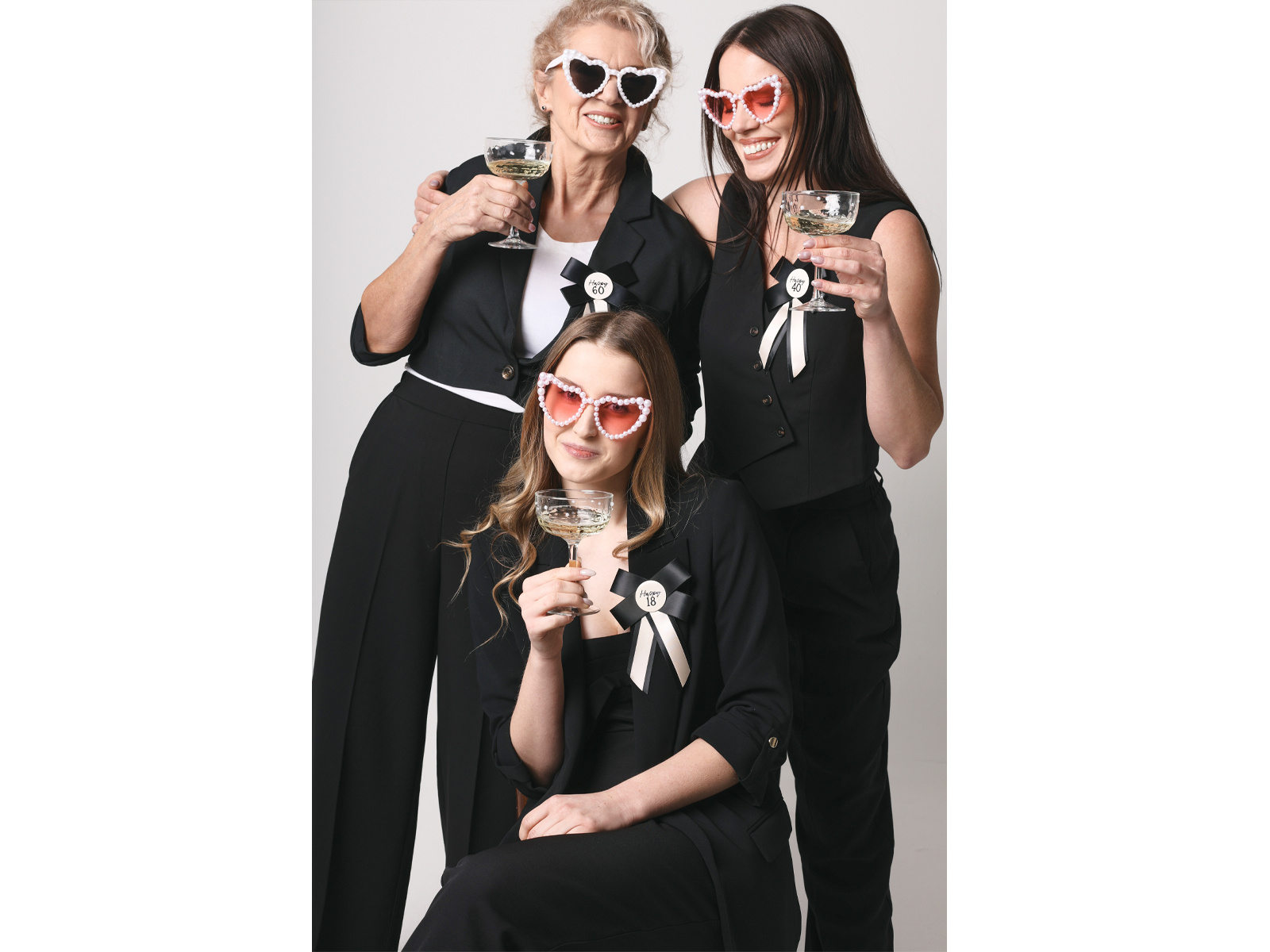 • Cotillion a Happy "18" szóval, fekete-fehér szalaggal díszítve, tökéletes egy 18. születésnapi partihoz.