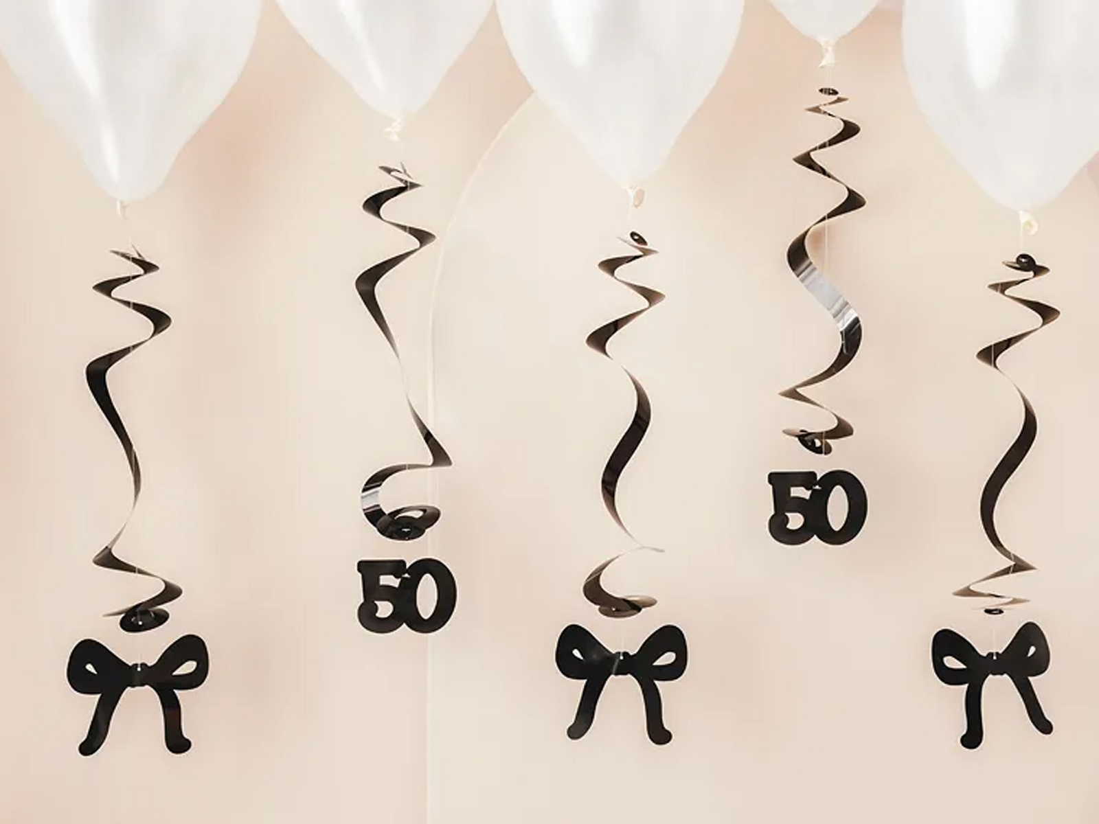 • Fekete függő dekoráció masnival és az 50-es számmal.