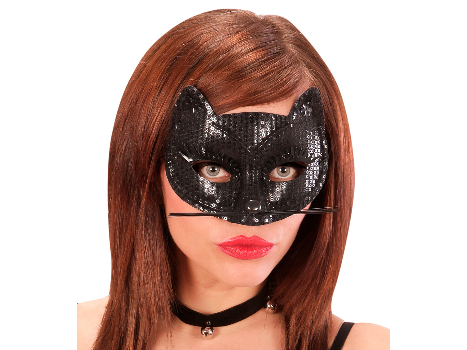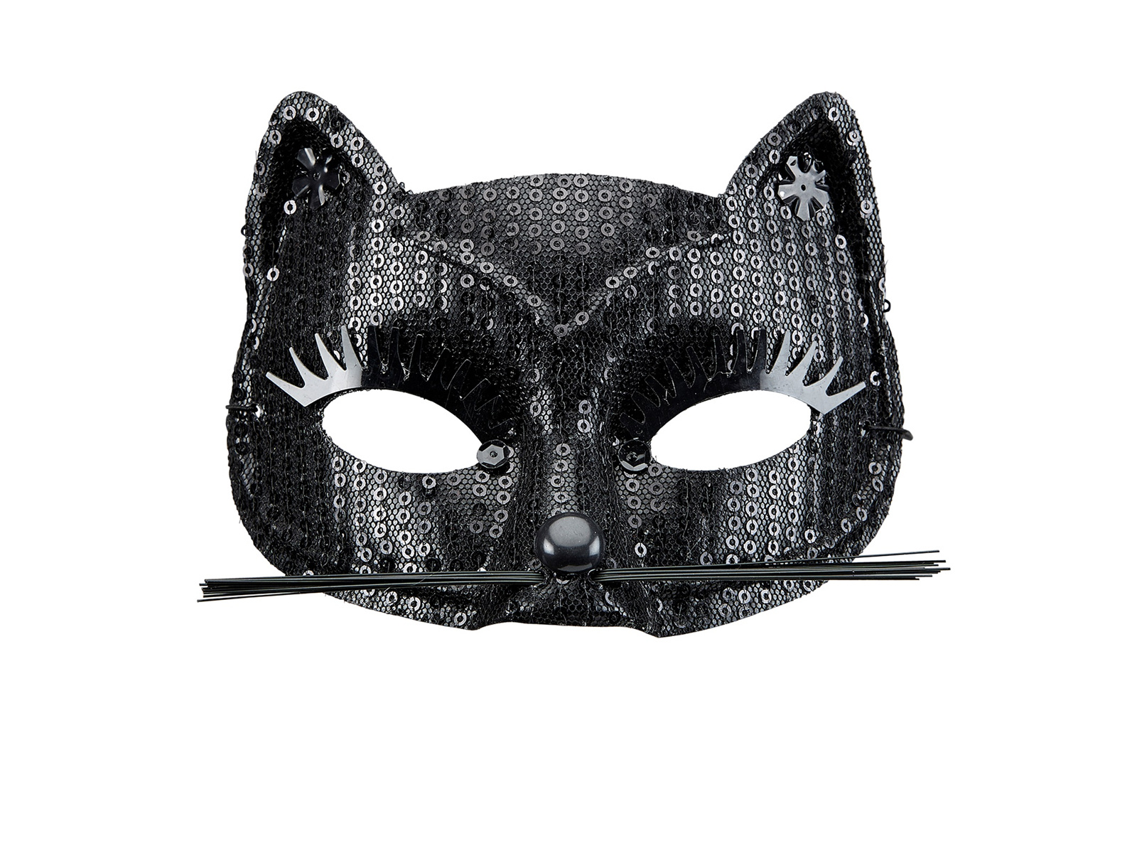 Fekete macska farsangi maszk flitterekkel - 1 db.
