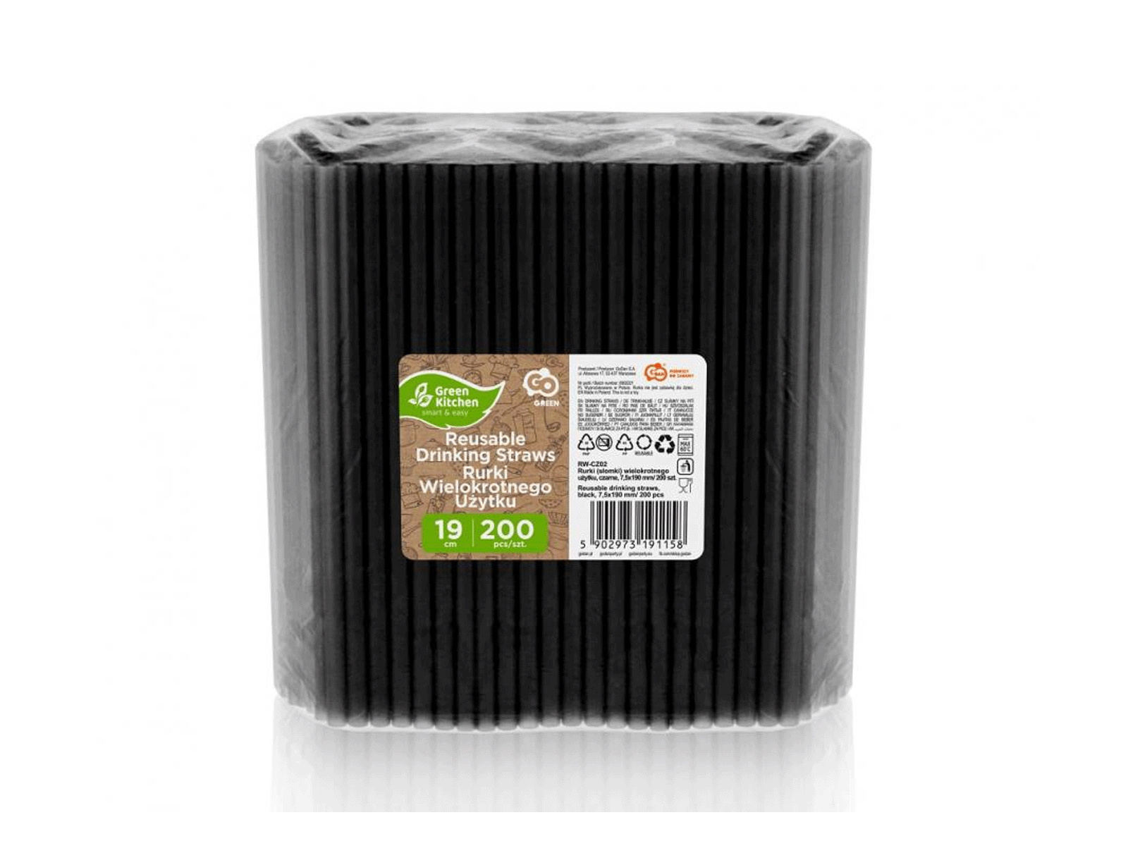 Újrafelhasználható egyenes csöves szívószálak fekete - 200 db.