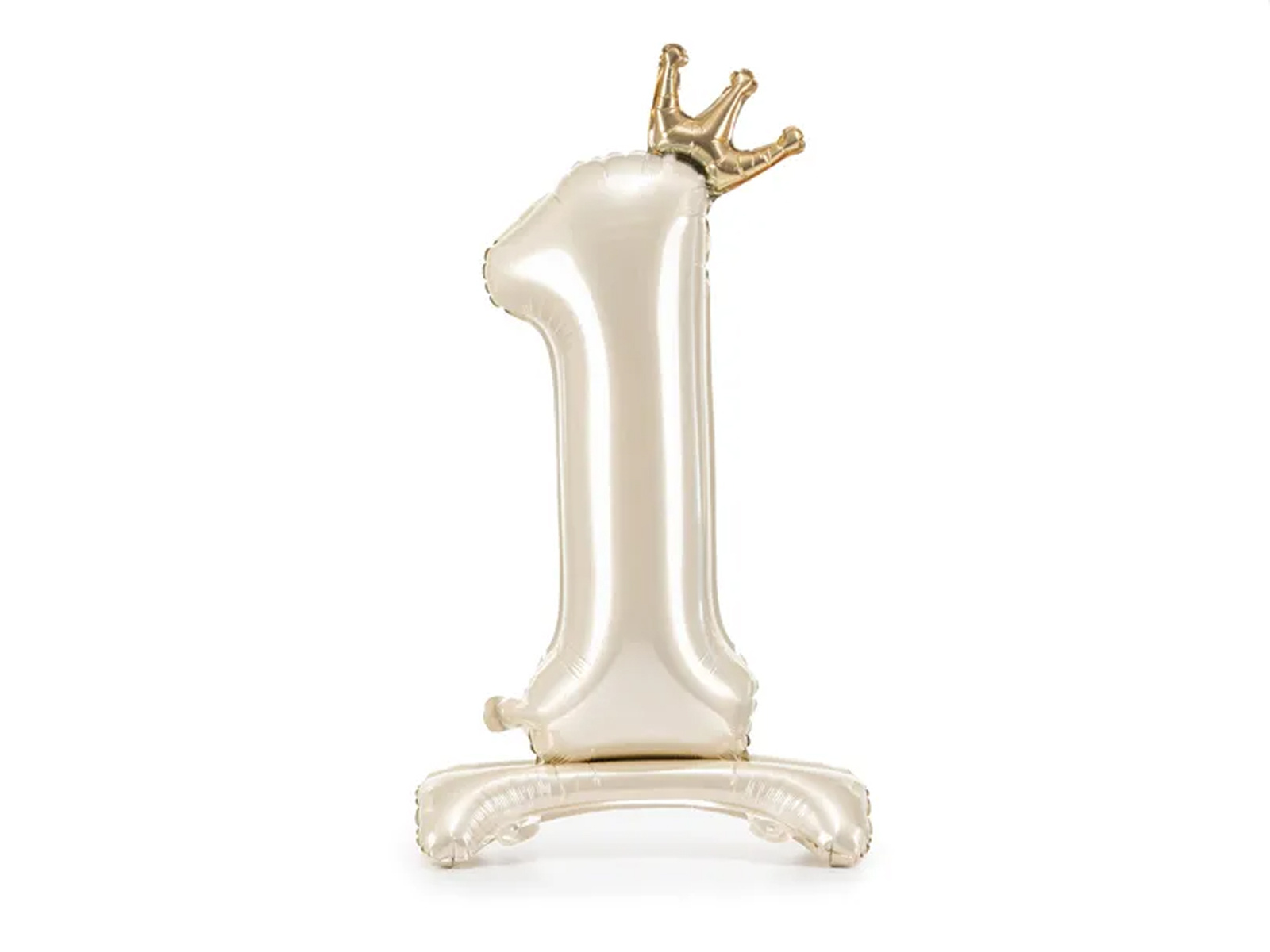 Álló fólialufi 1. számú krémszínű lufi koronával - 84 cm - 1 db.