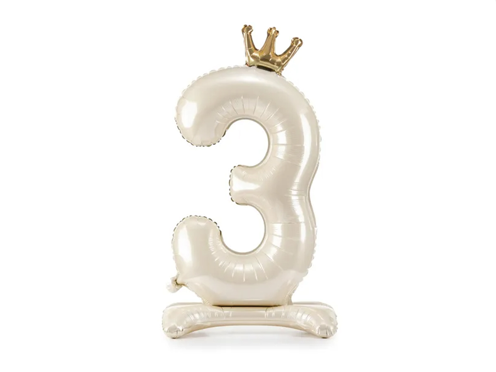 Álló fólia lufi 3 krémszínű, koronával - 84 cm - 1 db.