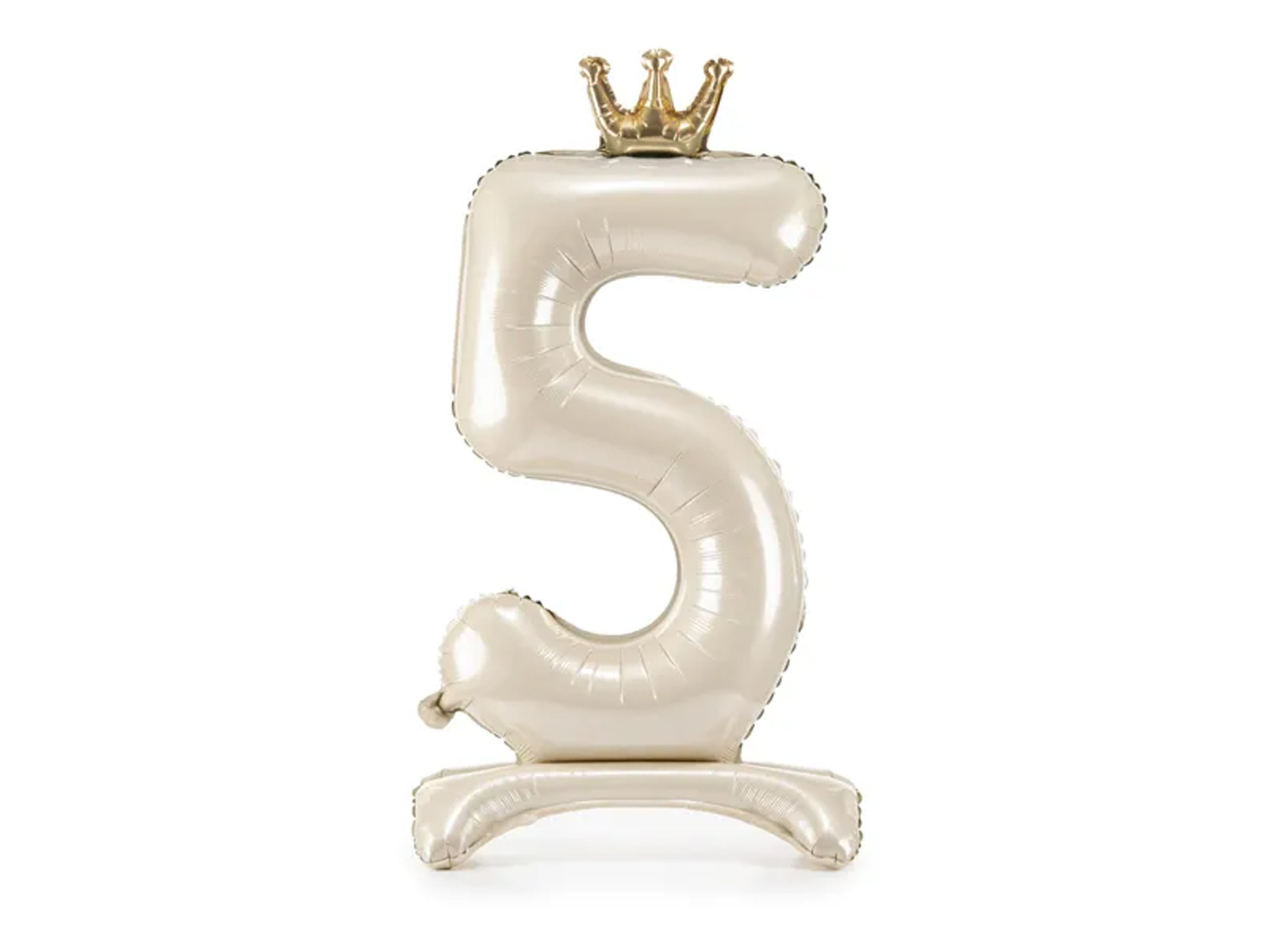 Álló fólialufi 5. számú krémszínű lufi koronával - 84 cm - 1 db.