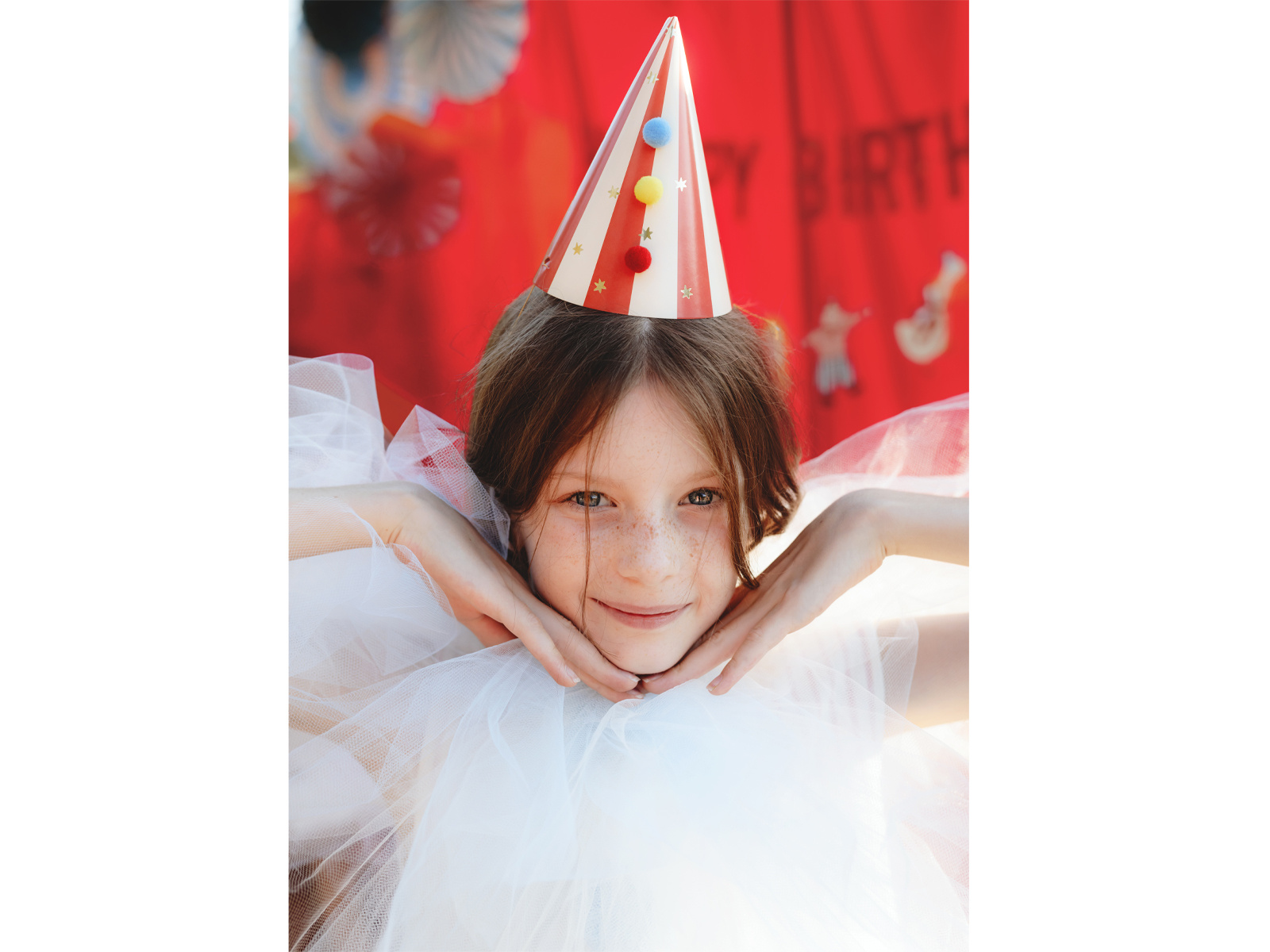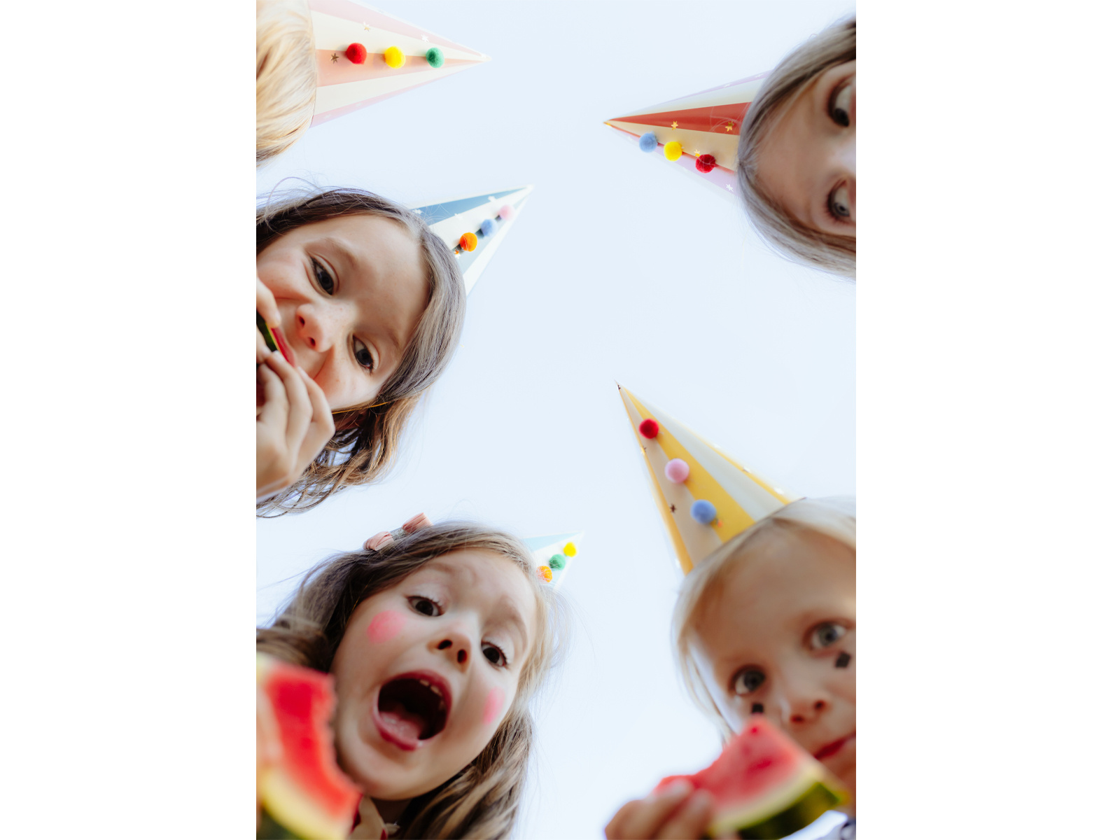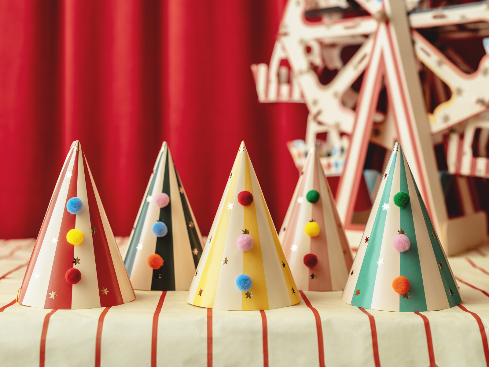 Papír sapkák pom-pomokkal - 6 db.