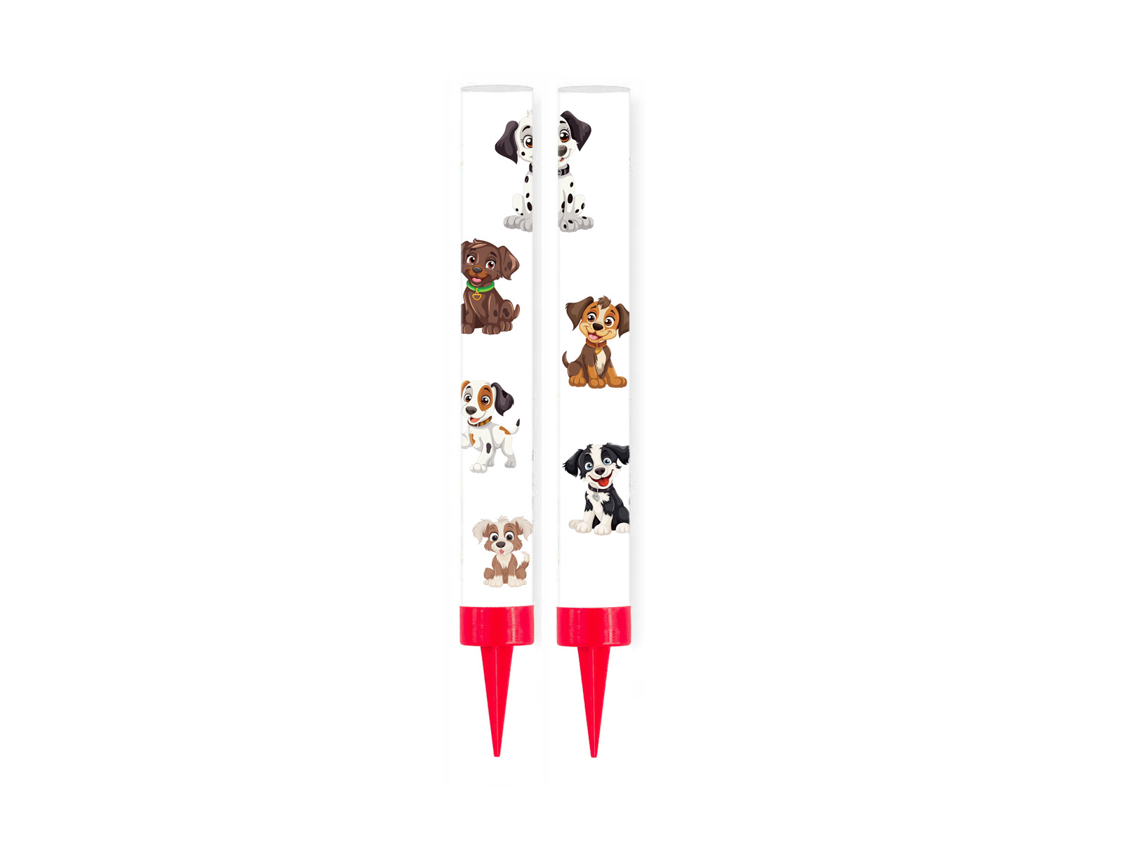 A "Dogs" kollekcióból származó tortaszökőkútjainkkal varázslatos pillanattá varázsolhat bármilyen születésnapot vagy partit. Minden szökőkút 12 cm és egy biztonságos műanyag hegyével van ellátva, amely stabilizálja a tortán. A készlet a következőket tartalmazza 2 darab, ami lehetővé teszi, hogy kettős benyomást keltsen a vendégekben.