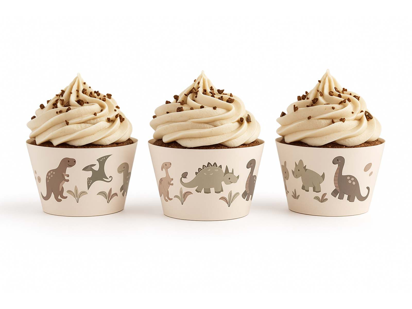 Az otthoni sütés egy őskori világba utazik a mi dinoszauruszok muffin sütőpapírral. A hat darab mindegyike valósághű dinoszaurusz lenyomattal nyűgöz le, tökéletes hátteret biztosítva a muffinoknak és más édes rágcsálnivalóknak. Összehajtogatva 5 x 7 x 5 cm-es, így a sütemények tökéletesen illeszkednek a szabványos muffinformákba.