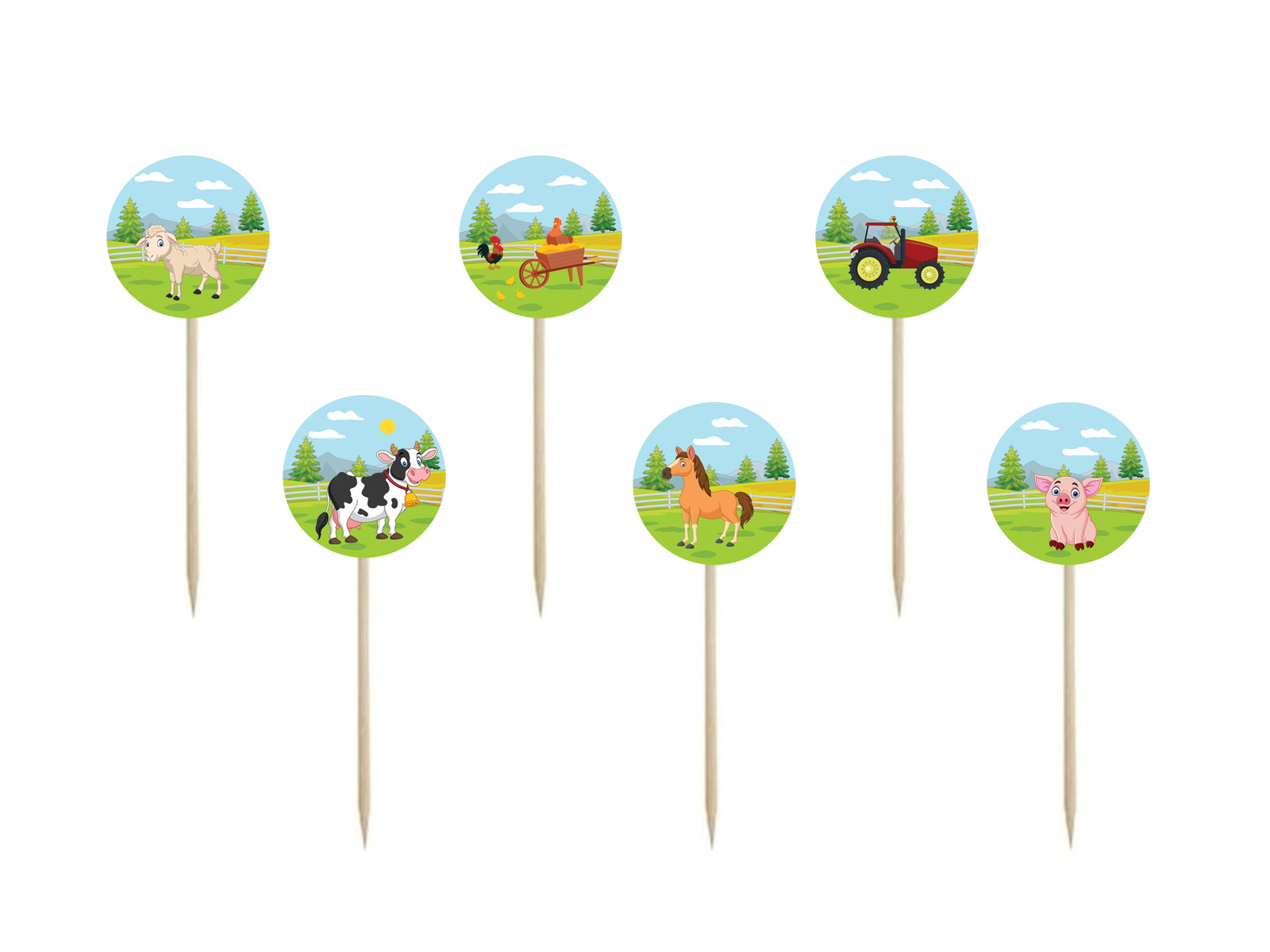 Díszítse születésnapi tortáját vagy muffinjait vidéki stílusban a pompás farmhouse tortafeltétekkel. Ezek a színes körök alakú papírdíszek, amelyeket imádnivaló tanyasi állatok imádnivaló nyomatai díszítenek, minden ünnepségnek bájt kölcsönöznek.