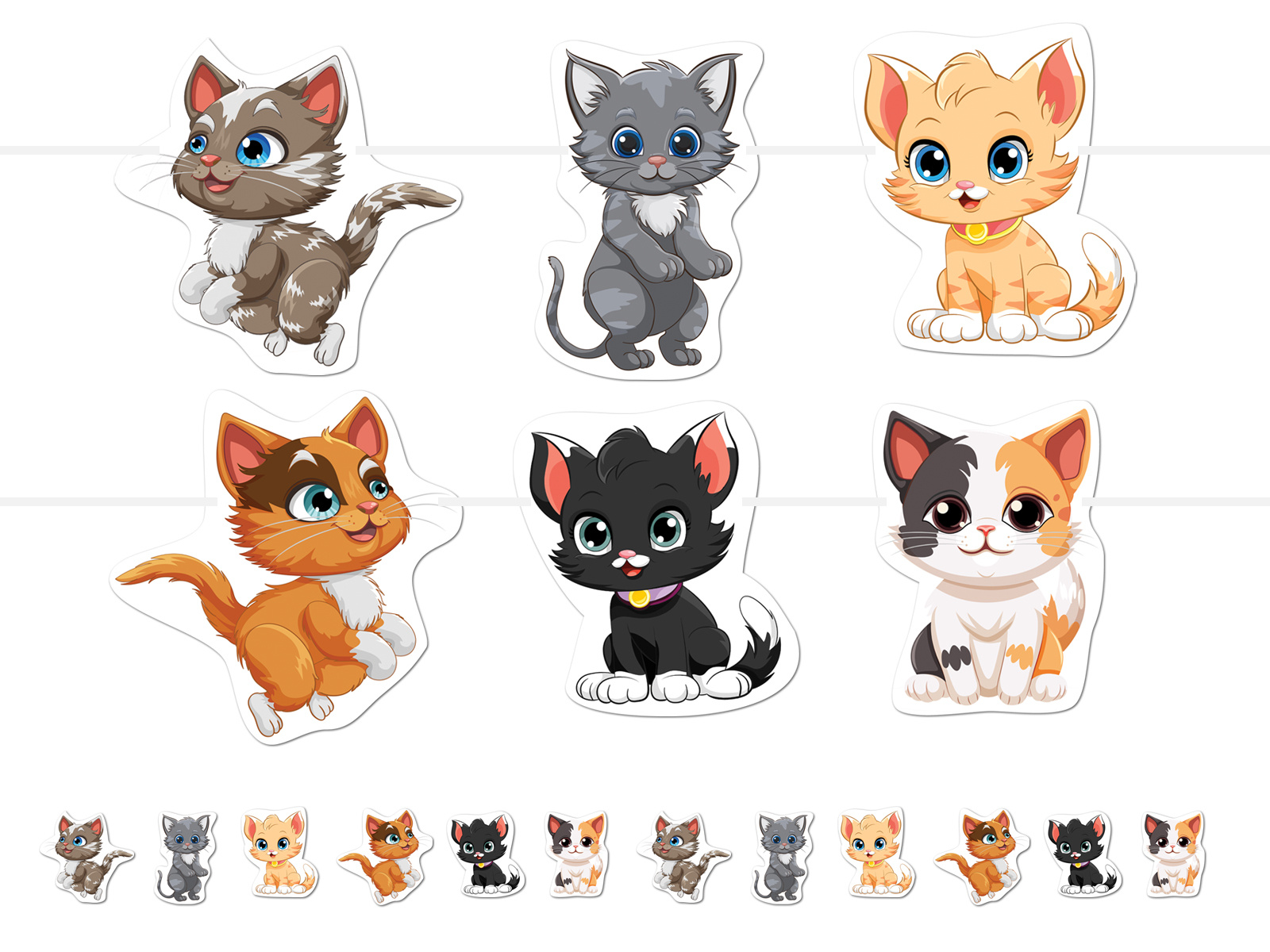 Kényeztesse magát egy imádnivaló dizájnnal a Macskák füzérrel, amely tökéletes dekoráció születésnapokra vagy más különleges alkalmakra. Egészítse ki a párt hangulatát ezekkel a papír vicces macskákkal!