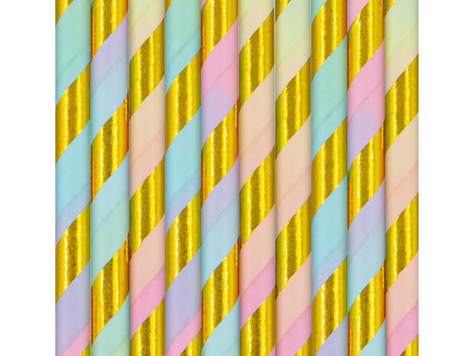 Színes csíkos papír szívószálak - 19,5 cm - 10 db.
