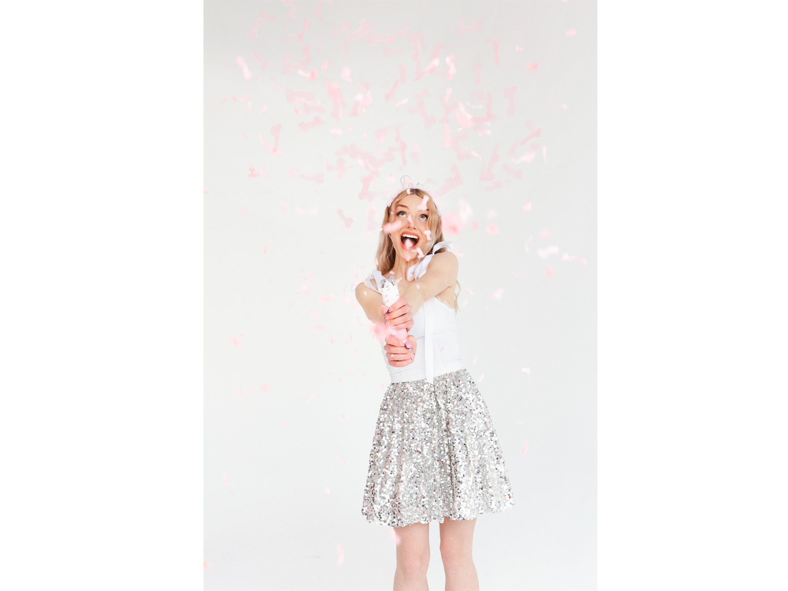 • Egyszerűen csavarja el a cső alját a látványos konfettilövéshez.