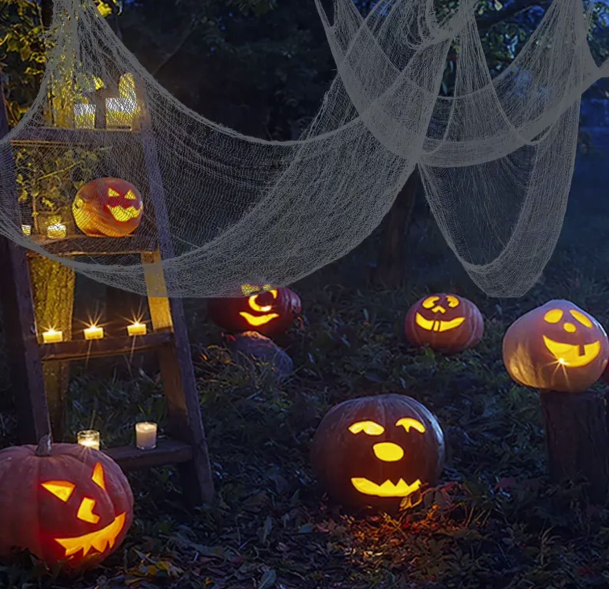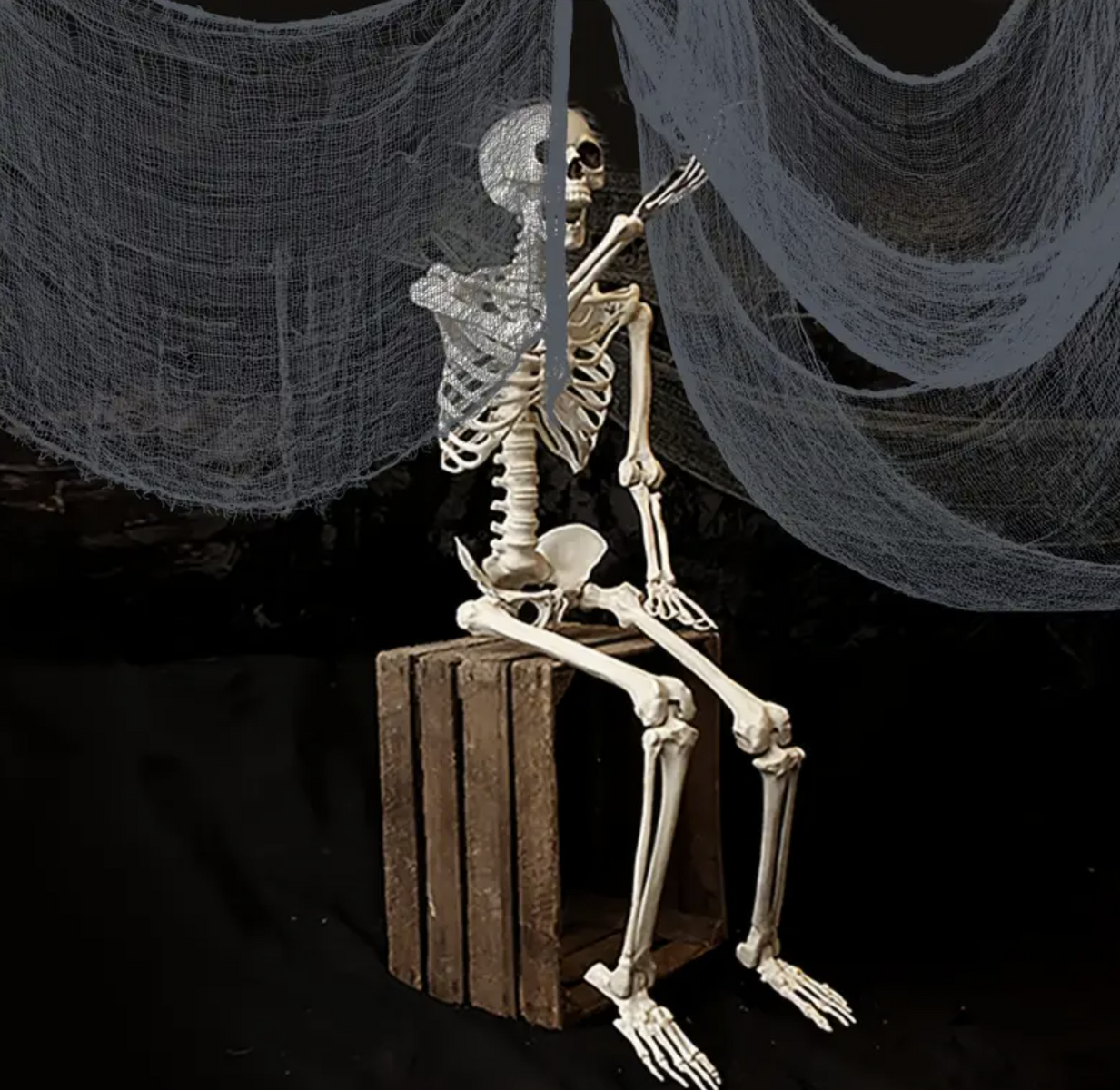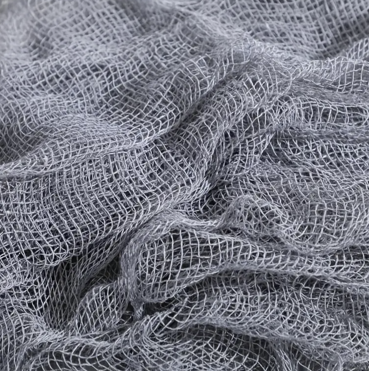 • Szürke hálós szövet, ideális dekoráció Halloweenre.
