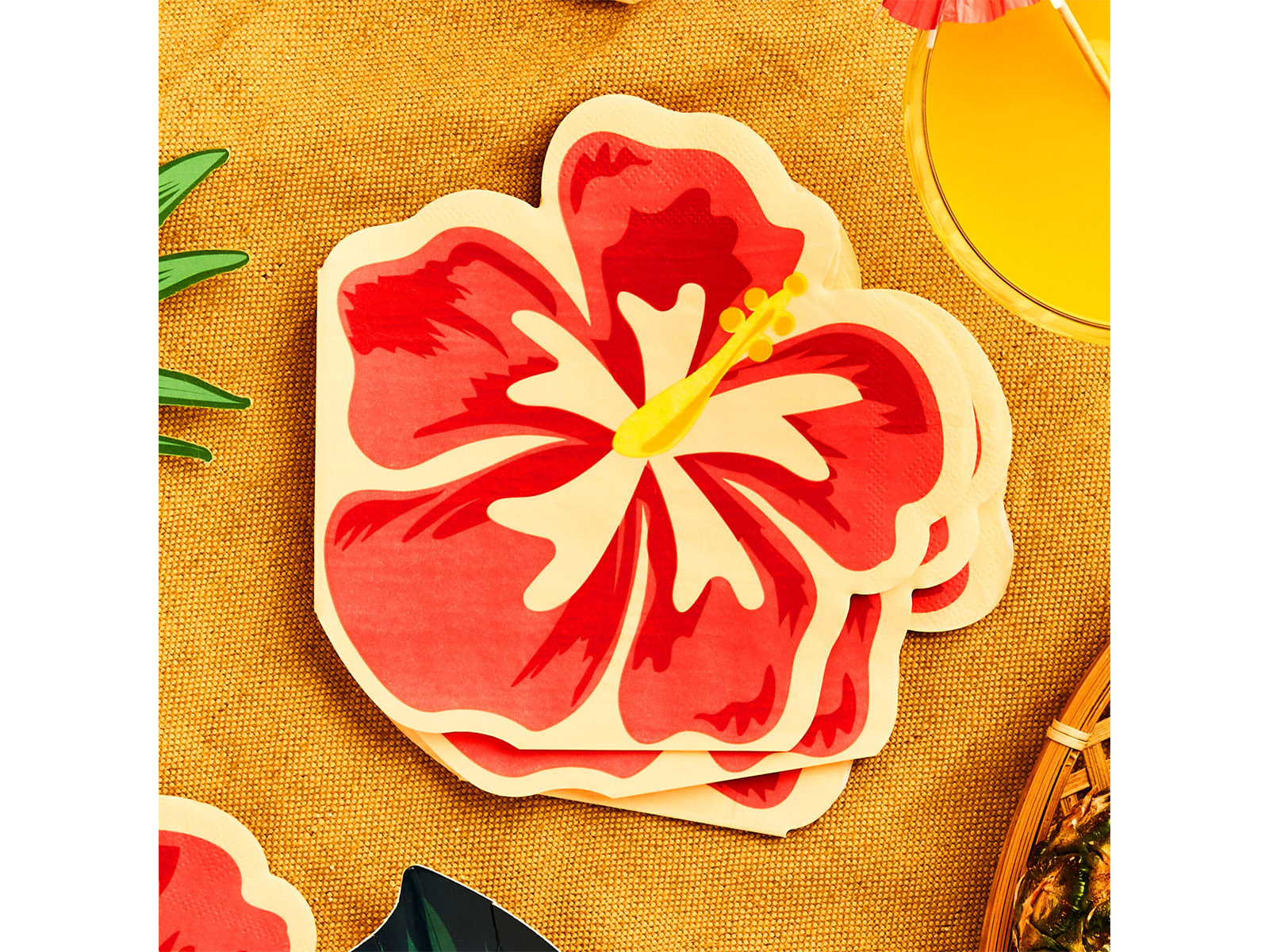 Válassza a Trópusi virágok szalvéták, hogy az asztalod szemet gyönyörködtető és felejthetetlen része legyen a dekorációnak minden hawaii partin!
