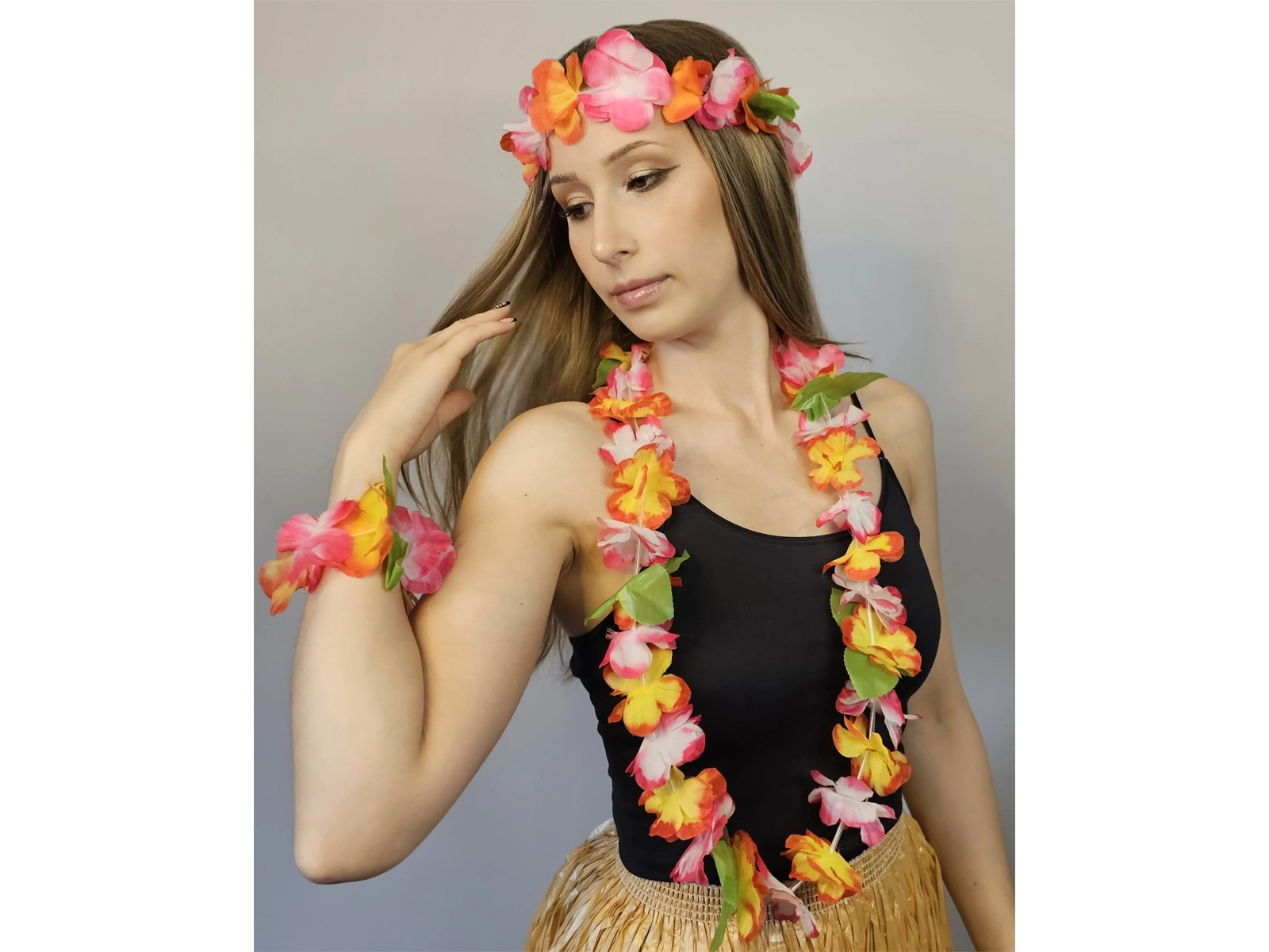 • Hawaii szett narancssárga és rózsaszín virágokkal.