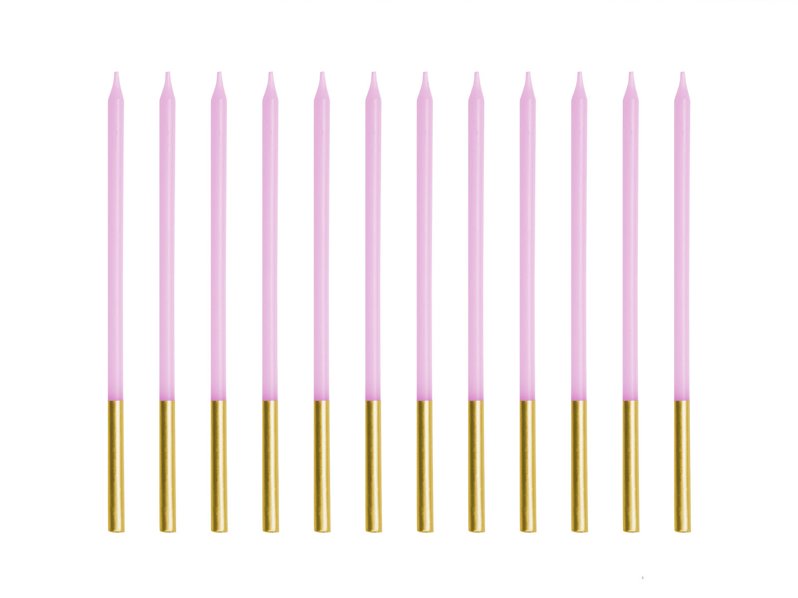 Születésnapi gyertyák lila és arany - 14 cm - 12 db.
