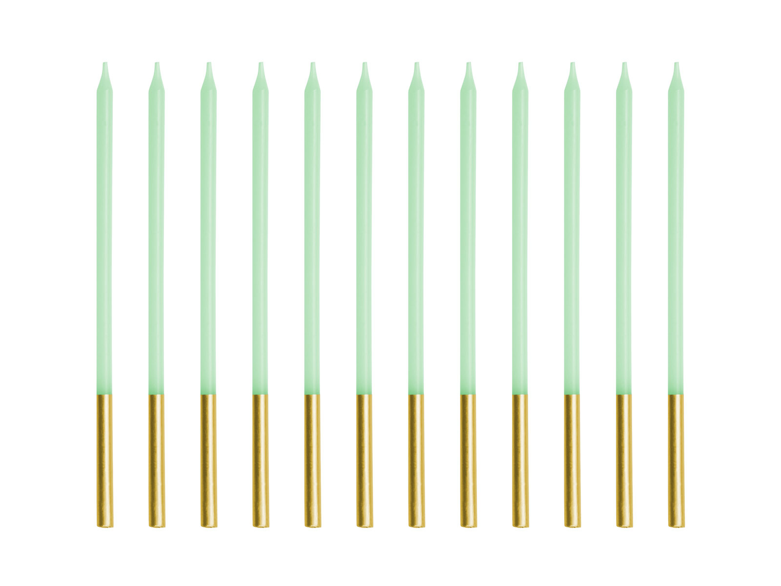 Zöld és arany születésnapi gyertyák - 14 cm - 12 db.