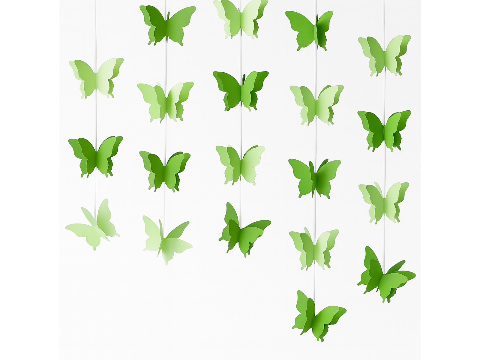 Akasztós dekoráció Zöld pillangók 3D - 3 m - 1 db.