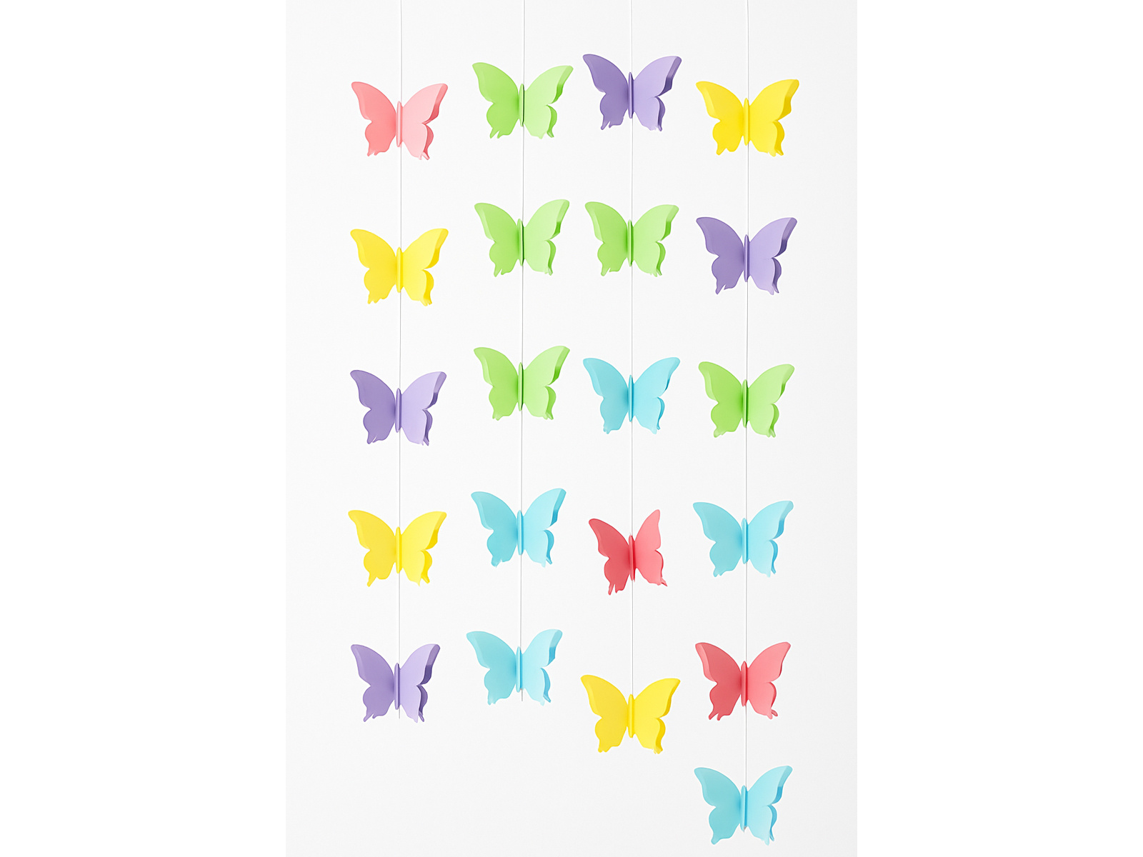 Akasztós dekoráció színes 3D pillangók - 3 m - 1 db.