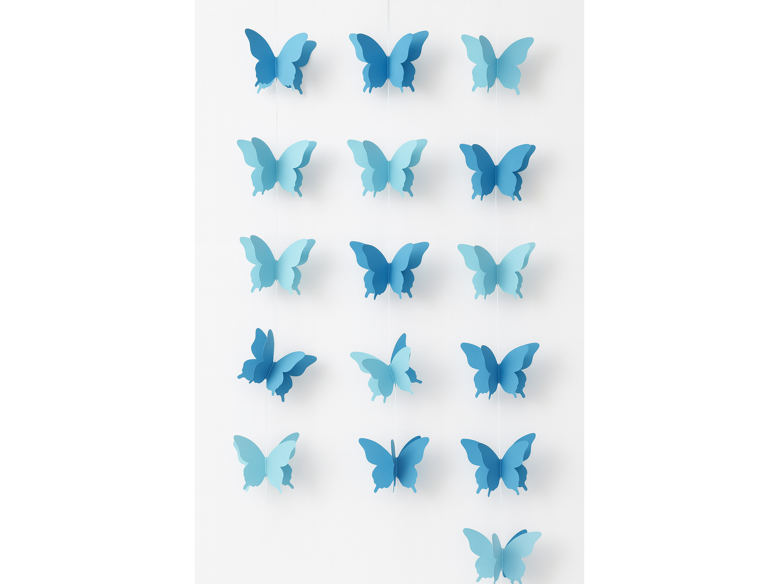 Akasztós dekoráció Kék pillangók 3D - 3 m - 1 db.