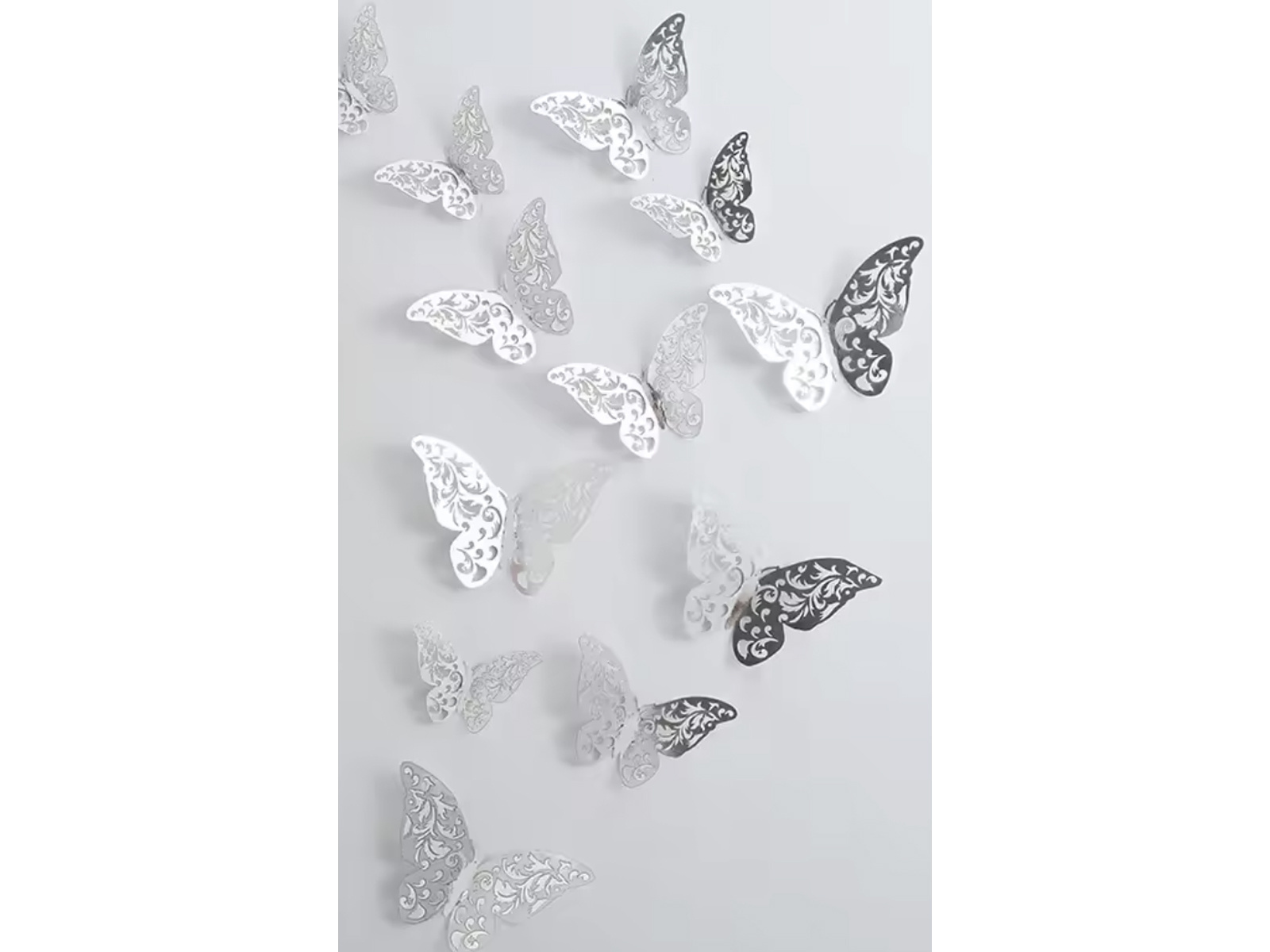 Tükördíszítés Ezüst pillangók 2D - 12 db.