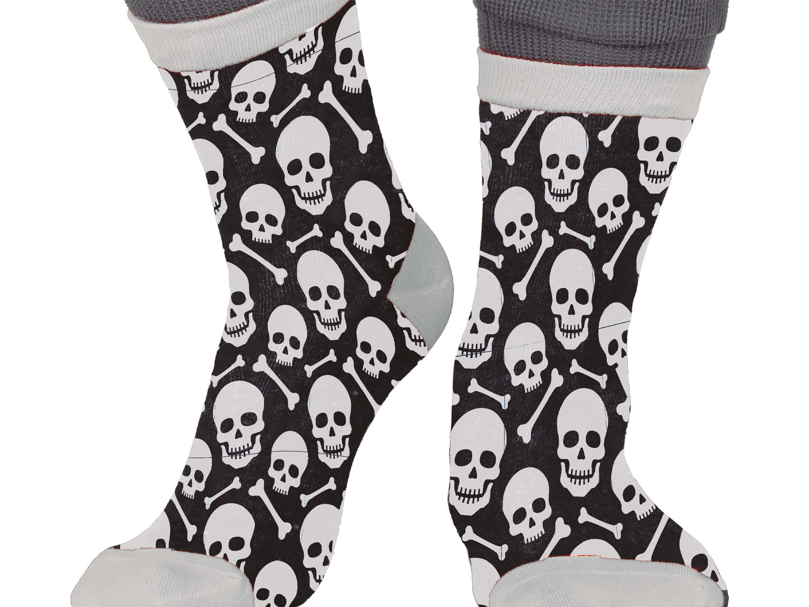 Ne hagyja ki a lehetőséget, hogy kitűnjön az év leghátborzongatóbb éjszakáján a Halloween Skull zokninkkal!